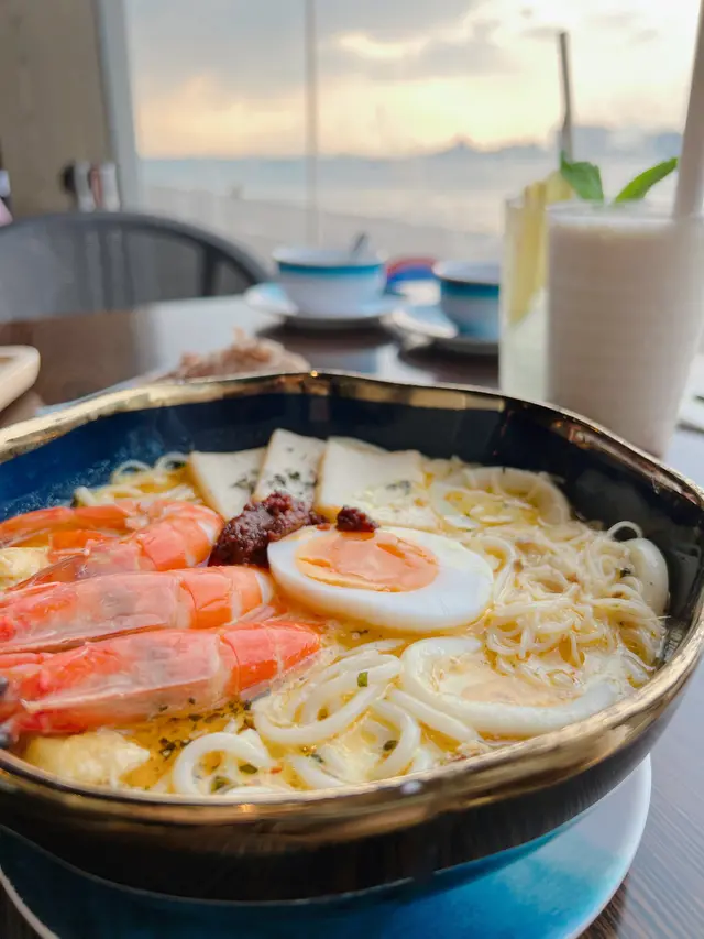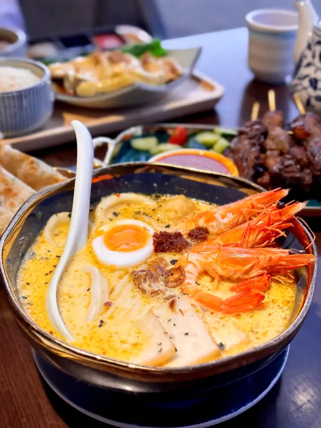 海港城呢間餐廳每次行過見到都大排長龍,今次就訂咗位試下佢😂好好彩安排到坐窗口位,可以望住靚靚海景食正宗星馬菜🇸🇬🇲🇾🔸椰香海鮮喇沙 $128每次食星馬菜必點菜式🤤喇沙湯底香濃帶微辣,麵底係米線加米粉,索晒湯非常好味🤤配料都好足料架,有大蝦、魷魚圈、魚片頭、豆卜、芽菜同糖心蛋。秘製參巴醬用匙羹另上,可自行決定辣度👍🏻🔸炒貴刁 $118呢度嘅炒貴刁特別在於係河粉混合油麵一齊炒,而且相當有鑊氣💯配料亦都非常豐富,有大蝦、臘腸、蛋絲、芽菜同韭菜。🔸印尼炒飯配沙嗲串燒 $118炒飯有得揀辣同唔辣,今次就揀咗食唔辣。上枱係顏色偏深嘅印尼炒飯,食落醬油味非常香濃。再加埋兩串沙嗲串燒、流心嘅太陽蛋同蝦片,非常滿足👍🏻🔸沙嗲拼盤(6串) $118雞肉同牛肉各3串,串燒都燒得啱啱好唔會太乾柴👍🏻沙嗲醬好濃稠好重花生嘅香味。🔸五香雞卷 $96雞卷炸得非常香脆,入面包住雞肉粒,再配埋旁邊嘅泰式辣醬非常惹味。🔸熱情果沙冰 $38非常清新嘅飲品,啱晒食完濃味嘢refresh一下😂🔸椰香斑蘭紅豆冰 $48飲落唔會太甜得嚟又帶有斑蘭嘅香味嘅紅豆冰,可以一試👍🏻#FEVI_星馬菜#FEVI_尖沙咀…查看更多