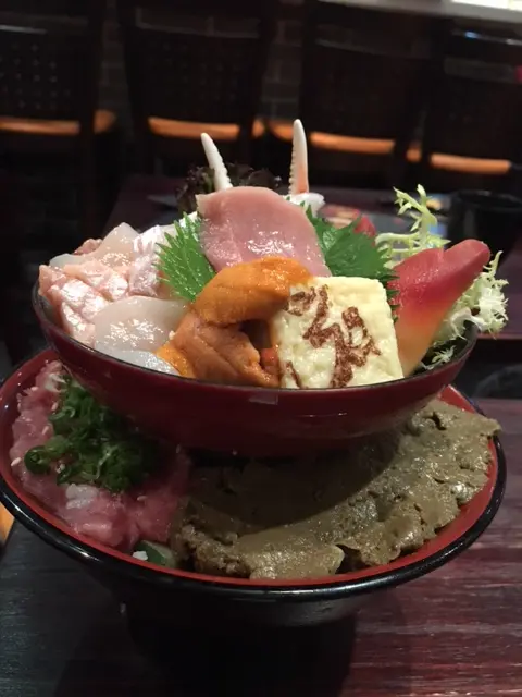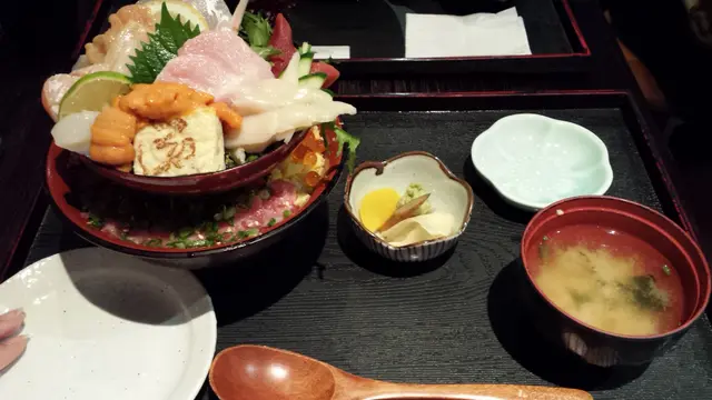 忙起上來真係無啖好食、最近忙足一星期、手頭上的工作己七七八八完成、係時候輕鬆一下。今日豪小小、慢活小小、享受一頓豐富午餐。外面氣温三十幾度、隔鄰枱那位肥仔嚷著快給我凍飲、話快中暑了、我心想有冇咁誇張。不過點杯凍飲、涼透一下都好嘅!店員推介了招牌特飲、日光日白會發光!橙色加藍色、攪拌後變成綠色加橙色、感覺有兩杯飲品、好抵呀!味道酸酸甜甜的果味、清涼透心。極上二段丼推加無料加送粒貝、白鳥貝和馬刀貝、餡料豐富了、值得一試。賣相壓軸全埸。上層多款魚生、如北海道海膽、蟹蚶、三文魚、帶子。。。等等、味道鮮美、讚不絕口。海膽最得我心、濃郁甘香的味道停留在口腔內久久不散。下層是三色飯、蟹杍疍飯、葱花碎吞那魚和蟹膏、一次過有三種口感、好滿足!中間是温泉蛋、嫩滑流心、可口滋味。食過美味中午飯過後、充滿能量、可再努力工作了。…查看更多