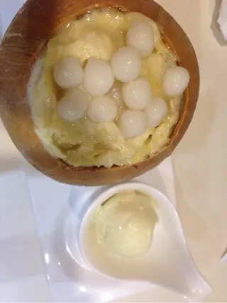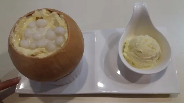糖宮隱匿在大圍一條小街之中,仿如一個神秘空間,遠離了繁囂,在靜寂的街道上,店內的每位客人卻能悠然自得的談笑風生,喜歡音樂的就在彈結他,而最特別的是糖宮設有戶外茶座,客人可以一邊談天,一邊吹吹晚風,很是寫意。我們去到的是侯正值宵夜時段,店內客人很多,我們就坐到閣樓,樓上我空間比想像中闊落,也是與好友談天的好地方。menu上的甜品很特別,也有不少創新款式,很有小店獨特的風格。我們懷著好奇心,一共品嘗了四款不同的甜品。作為榴槤控,我毫不猶豫地選擇了榴槤椰椰。它由椰皇燉蛋白 加上 西米、小丸子 及 榴槤蓉 做成的,配上一球榴槤雪糕,光是賣相已經相當吸引,絕對可以成功呃like。為食的我二話不說就勺了一大匙蛋白西米榴槤,三重口感一次過滿足了甜品胃,蛋白又香又滑,同時咬到西米粒粒,口感很qq的說。榴槤控自然少不了點評一下榴槤蓉,其實本人本身對榴槤甜品沒太大喜好,總覺得製成甜品的榴槤味道太淡,沒有水果榴槤一般香軟。但糖宮這個榴槤椰椰卻不一樣,除了榴槤的香味得以完全保留,配上椰皇蛋白的味道是超級夾,香甜沖斥到脷底以至整個口腔。再吃一口小丸子也是零違和感。最後當然也少不了配搭榴槤雪糕一齊享用,結果也自然是完全不會失望。這個甜品,完勝。而其他的甜品也是相當不俗,朋友們一致讚嘆不已。讓我再來推介多一道,就是宇治抹茶雪糕燒鯛魚。別以為多人喜歡抹茶,那麼雪糕就一定是重點,那你就錯了,在這道甜品上,抹茶雪糕好吃只是基本。最特別是燒鯛魚,不單止造型精緻,入口天是香脆,特別仔細地制出有微微的燒焦香味,最是獨一無二。配上雪糕和紅彤彤的紅豆,簡直大滿足。…查看更多