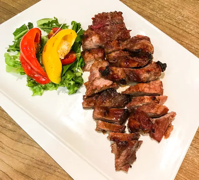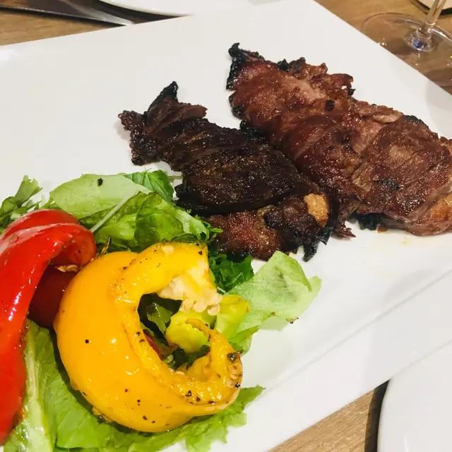 而家東廣場形成左一個集中左不同國家的菜色的食肆集中營,今晚選了食西班牙菜,但雖然店鋪小小,但冇諗過質素咁高。先叫一口牛串燒 $45 ,有啲似巴西串燒,好大串有三大塊牛肉粒,中間有紅色椒,牛肉稔身多肉汁,旁邊有大量沙律菜。之後見到每枱都必點的,馳名橡果級黑毛豬極品梅頭叉燒$168,入口面有濃濃蜜糖香味,黏口,肉質超軟熟外脆內稔,肉汁鮮甜超好味,果然高質素的黑毛豬,伴菜係有機沙律菜,好新鮮。來得高質餐廳,當然繼續豪一豪叫埋佢既西班牙野生焗龍蝦$298,開邊泡製的,廚師細心起肉,再撈埋忌廉同三色椒粒增加口感,龍蝦肉彈牙,面還有微微芝士香味。飲品叫了檸檬薑茶Happy End$32,估唔到呢度都有花茶品嚐,減輕膩口感,飲完口嚨非常舒服。…查看更多