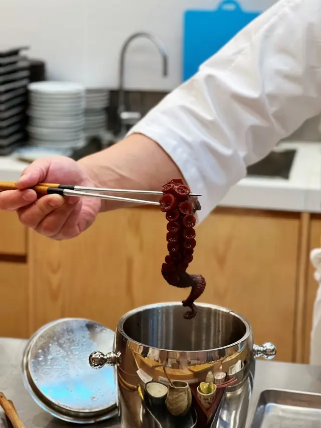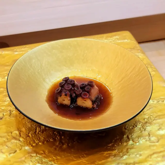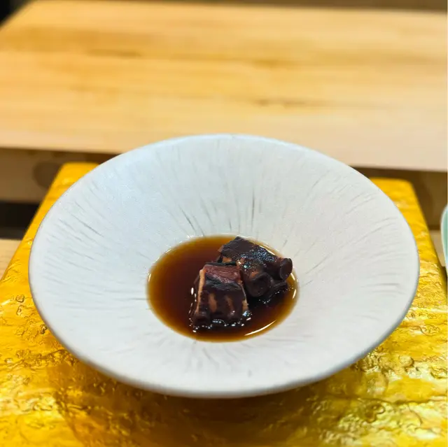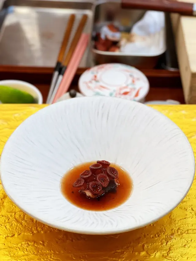 經朋友介紹,上星期晚上專程拜訪「鮨宏」品嚐Omakase😍位於北角及炮台山交界的「鮨宏」門口設計作風低調,一不留神就會錯過了。店內設計裝潢感覺舒適,而且只設置吧枱座位,讓每位客人都可以坐於席前細味箇中真味,但只係得8個座位,所以非常難book位😉師傅好好傾,但都會專業地介紹每道菜同食法,十分享受這一餐晚飯,好開心舒服👍 Dinner Menu $1,800/人晚餐Omakase包括先付、刺身兩點、煮物四款、茶碗蒸、壽司七貫、雲丹、揚物、卵燒、吸物及甜品🤩 🔹️お造り兩点1️⃣油甘魚選用左魚餃位,魚肉呈淡紅色,肉身油分高,口感好似拖羅,配以紫蘇花點綴,食落淡淡甘甜,每口都充斥魚油香氣。2️⃣北海道象拔蚌師傅將白象拔蚌切成條狀,不僅入口時嚼口更好,比起切成片狀更耐吃。象拔蚌味道濃厚鮮甜,口感爽脆利落,上面灑上海鹽,入口後便慢慢嘗到象拔蚌的甜味。🔹️煮物1️⃣松葉蟹師傅拆左一絲絲的松葉蟹肉出來🦀,食落啖啖蟹肉,肉質軟滑,鮮味濃郁,利用蟹醋的酸味帶出無比甘甜的蟹香味。2️⃣櫻煮八爪魚經過用醬油及茶葉慢煮之後顏色呈粉紅色🐙,慢煮後肉質顯得格外柔軟,非常鮮美。3️⃣鮟鱇魚肝慢煮後再以花雕浸泡一晚入味,及後再造成慕絲的效果,製造出綿密軟滑的口感,最後用金蓮葉包裹食鮟鱇魚肝,驚喜感滿分‼️👍🏻4️⃣蝦夷磯煮鮑魚磯煮鮑魚利用慢煮方式配上特製的醬汁浸泡🦪,再用鮑魚肝醬撈入壽司醋飯,更能突出鮑魚原有的鮮味。 茶碗蒸海鮮茶碗蒸口感滑溜,面頭放有三文魚籽,味道夠晒濃郁。 食壽司前比左一碟自家醃製嘅醋漬我地送口,味道新鮮甜美又清爽。 🔹️お握り鮨七貫1️⃣間八魚魚肉口感煙韌中帶有少許的脆感,味道肥而不膩。2️⃣北海道新鮮北寄貝師傅將北寄貝輕輕灸燒過,貝肉既香且鮮甜多汁,師傅拍一拍左個貝身,令肉質更爽口🤗3️⃣平靜魚魚質結實爽口,魚味濃郁,味道似油甘魚,非常清新😋4️⃣梭子魚魚質鬆軟鮮甜,魚皮油脂豐富,師傅將魚皮輕輕炙燒,從而將魚油迫出,令油香更突出。5️⃣白帶子師傅將白帶子切成一梳梳,肉質嫩滑柔軟,口感爽口,鮮味濃郁,好清甜。6️⃣北海道牧丹蝦牡丹蝦蝦肉肥美🦐,肉質綿軟中帶彈性,味道鮮甜爽口,真係好回味🤩 7️⃣大拖羅色澤鮮嫩的大拖羅佈滿精緻的魚油花紋,富天然魚油脂的甘香,入口即溶,完全不膩,鮮甜無比‼️ 🔹️雲丹札幌海膽飯師傅用上北海道札幌海膽,色澤為淺橙黃色而飽滿挺身,味道濃厚甘甜,回甘強,口感幼滑又creamy😍 🔹️燒物甘鯛立鱗燒 配鯷魚汁將甘鯛嘅魚鱗燒得豎起來,魚鱗炸得酥香清脆,魚肉則保持幼嫰細滑,配上師傅自家調製嘅鯷魚汁,即時提升鮮味。 🔹️卵燒玉子燒紮實豐厚的口感加上甜滋滋的味道,口味上也能吃到濃厚的蛋香。 🔹️吸物味噌湯 味噌湯味道很濃郁,裡面仲有烏冬,口感豐富。 🔹️甜品師傅知道朋友生日,所以整左生日版本的甜品🎂🎉仲插埋生日牌,好貼心❤️1️⃣鮮橙果凍師傅自家製的‼️鮮橙味道濃郁,一口咬落去,真係好似食緊橙,甘甜清香,非常清新解膩🍊2️⃣士多啤梨芝士蛋糕呢款都係師傅自家製的‼️酸甜士多啤梨味道混和芝士,配搭雖簡單,但卻非常美味可口,仲無用任何食用色素架🍓3️⃣蜜瓜蜜瓜網紋美,青色瓜肉果肉清甜多汁。 ⭐️整體食物質素高又新鮮,也看得出廚師在設計菜式和安排上的心思。…查看更多