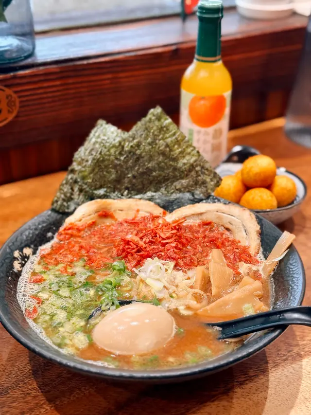 朋友話未食過呢間,咁啱去開呢頭,順便帶佢黎試下。舖頭好多貓貓裝飾同掛畫😻日系感滿滿🐱蔥山拉麵🍜 $86對上一次食已經覺得爆蔥好正,成坐山咁勁吸睛🫶🏻所以今次都係揀番佢,曲麵比較似香港常見嘅拉麵,麵條較滑,湯底相對冇咁濃,但食完個口就會keep住強烈嘅蔥香味。豚肉微微焦香,肥瘦均勻🐱櫻花蝦拉麵🦐 $88麵質揀左直麵,比較似平時食開嘅日式拉麵質感,較有口感,啖啖都食到櫻花蝦,湯汁偏濃味,份量極多!加埋原隻溏心玉子,性價比高👍🏻🐱黃金丸🍠 $28入面有香芋餡嘅地瓜球,香甜軟糯😋🐱靜岡蜜柑碳酸汽水🍊$24見到必嗌嘅日本汽水,果汁感重😆🐱紅茶花伝蜜桃紅茶🍑 $16味道清甜,淡淡茶清香…查看更多