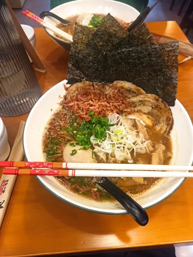 小商場裡的迷你拉麵店,座位不多,桌距卻夠。店員客氣,出餐速度穩。店內拉麵一律配溏心蛋與叉燒,叉燒可選慢煮或火灸。我們先試期間限定的黑醬油叉燒拉麵,配火灸叉燒。叉燒邊位略焦,油脂被逼出,入口帶微微炙香;湯底鹹香分明但不死鹹,收口乾淨,麵條掛湯力不錯。另一碗是櫻花蝦拉麵。湯底濃稠一些,蝦香直率不腥,櫻花蝦下得慷慨,幾乎每一口都咬得到乾蝦,香氣與口感都加分。溏心蛋醬油味入芯。小吃點了日式餃子和雞肉棒。餃子煎面金黃,薄皮鎖汁,餡料帶蒜香;雞肉棒拌入雞軟骨,咬下去軟中帶脆,層次清楚。整體份量適中,價錢合理。想在商場裡找一碗穩妥的拉麵,這裡值得一坐。…查看更多