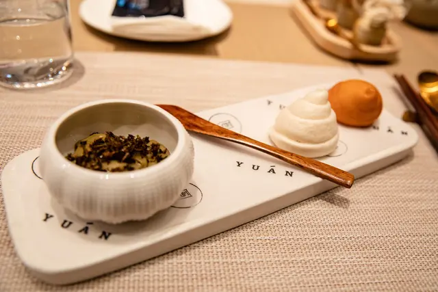 冰梅 柚皮 茨實 一上枱完全想像不到這是油炸鬼😂 fusion得突破我的想像。泡泡是豆醬打成的,能想像到下面還有層薄蒸蛋嗎?層次之多,超乎想像。•