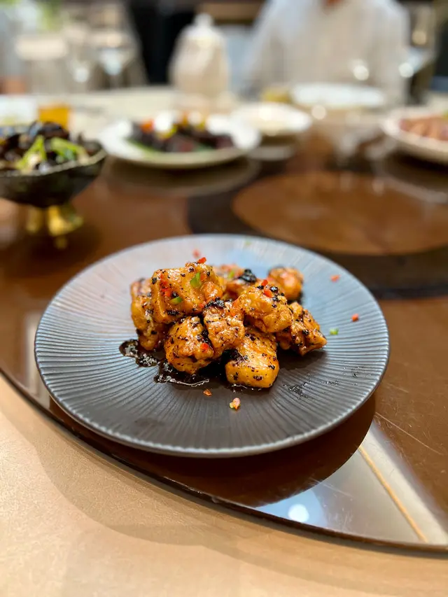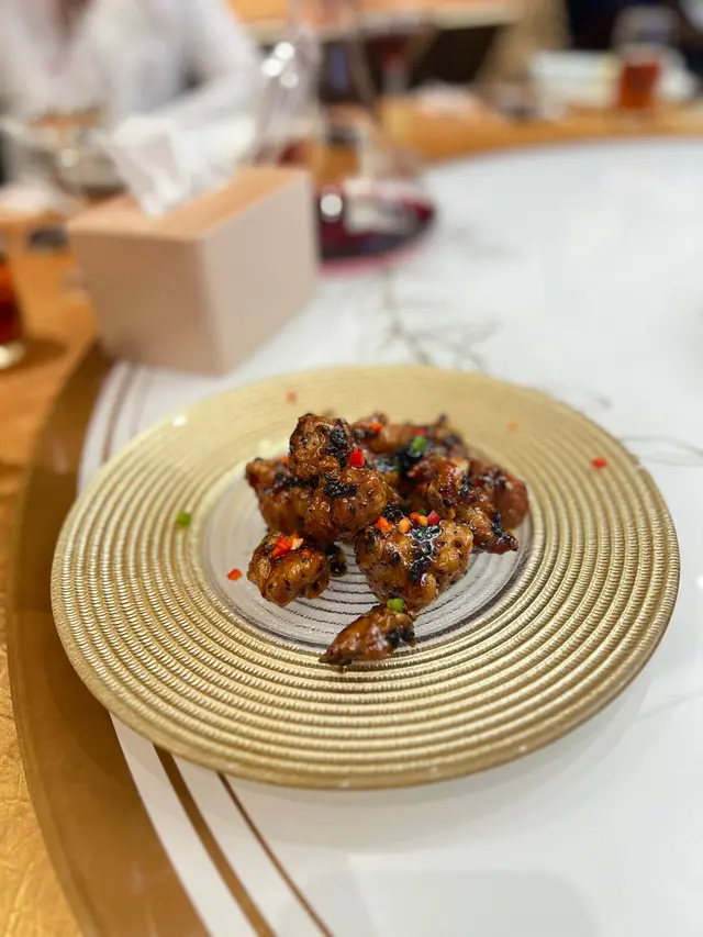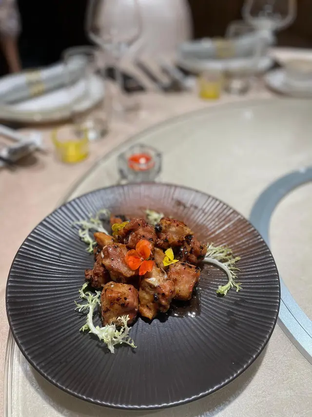 有日去完尖沙咀唱k見到安達新開咗間中式私房菜,即刻趁星期五晚約朋友一齊去試下新餐廳,估唔到好有驚喜!🔸黑汁豚肉叉燒叉燒肥瘦分明,軟嫩到入口即化,醬汁食落甜而不膩,充滿醬香🔸欖角骨排骨過油之後表面酥脆可口,舂碎嘅欖角果種鹹香味令到簡單嘅排骨都有豐富嘅層次🔸碌鵝鵝皮油光汪汪,肉質柔嫩細滑,鹹中帶啲甘甜🔸京蔥汁脆皮海參海參外有一層好薄嘅脆皮,入面就Q彈爽滑,口感非常特別;京蔥汁煮到好香甜,完全冇蔥嘅辛辣感🔸海味黃炆翅足両嘅魚翅加上海參條去增加口感,食完之後齒頰留香,充滿雞油嘅香味。呢啲傳統嘅宮廷菜已經買少見少,估唔到係呢到食到!🔸蟹皇蒸元貝全晚最鍾意嘅菜式! 元貝清甜,醬汁食得出係用蟹黃慢慢推成,隱約中滲透住花鵰嘅香氣🔸招牌爆汁玻璃乳鴿玻璃同爆汁都係名不虛傳,乳鴿炸得皮脆肉嫩,肉汁完全鎖哂係乳鴿入邊,必食之選!整體嚟講,餐廳食物質素上乘,環境舒適,絕對對得住佢嘅價錢有凸,值得再次幫襯!…查看更多