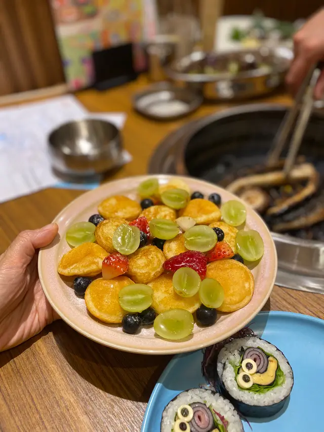 之前見到啲介紹幾吸引一直想試呢間親子餐廳👨👩👧👦👨👩👦所以今次好快就決定去試下朋友網上訂位✅用餐前一日收到msg confirm bookingBook左3:00-5:00pm 3點準時入座,playroom 3:00-3:30pm進行清潔食少少嘢之後小朋友可以玩足全程🛝(3:30pm-5:00pm)📌餐廳環境不錯安排的坐位非常好可以看到playroom內情況而且餐廳大部分都係卡位所以我地4大3小都坐得舒適職員服務態度不錯好快可以回應我哋嘅需要👍🏻📌食物方面可以選燒烤或者熟食我哋今次選擇咗熟食叫左3份兒童餐、3份主食、2份甜品🥢龍年行運小跑車🚙x2車車造型,男孩子最愛,有水果有炸雞都係小朋友最愛🥢花團錦簇造型飯團🍱女孩子點了飯團,因為造型可愛,份量充足夠飽肚大人就叫左主食同甜品🥢韓式炒粉絲🍲唔記得影相,味道可以🥢芝士溶岩飯🍚唔記得影相,份量足,好食🥢海鮮豆腐湯鍋(二人份)🥘大量蔬菜、海鮮量唔算太多,味道ok🥢水果迷你班戟🥞同圖片差距很大,水果偏少,有點失望🥢蘋果香蕉窩夫🧇賣相可愛,味道可以,小朋友喜歡🥢整體來講大人小朋友都好滿意。價錢合理。下次再去!