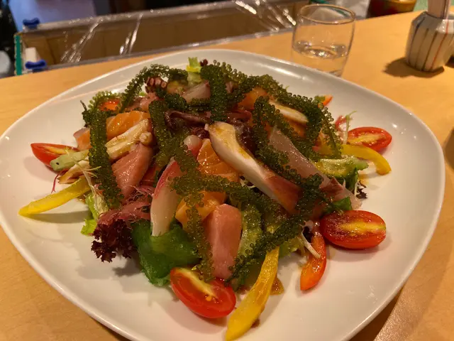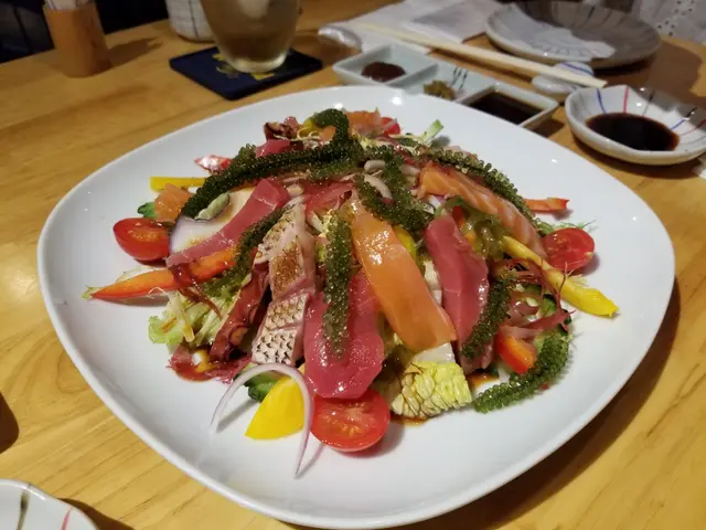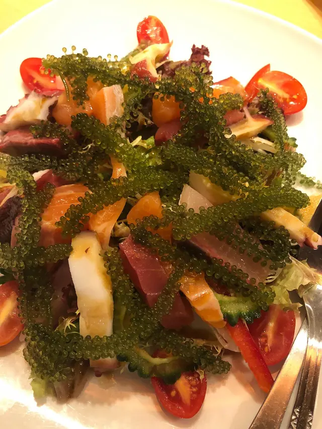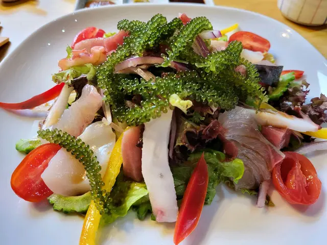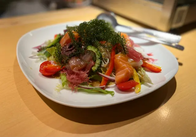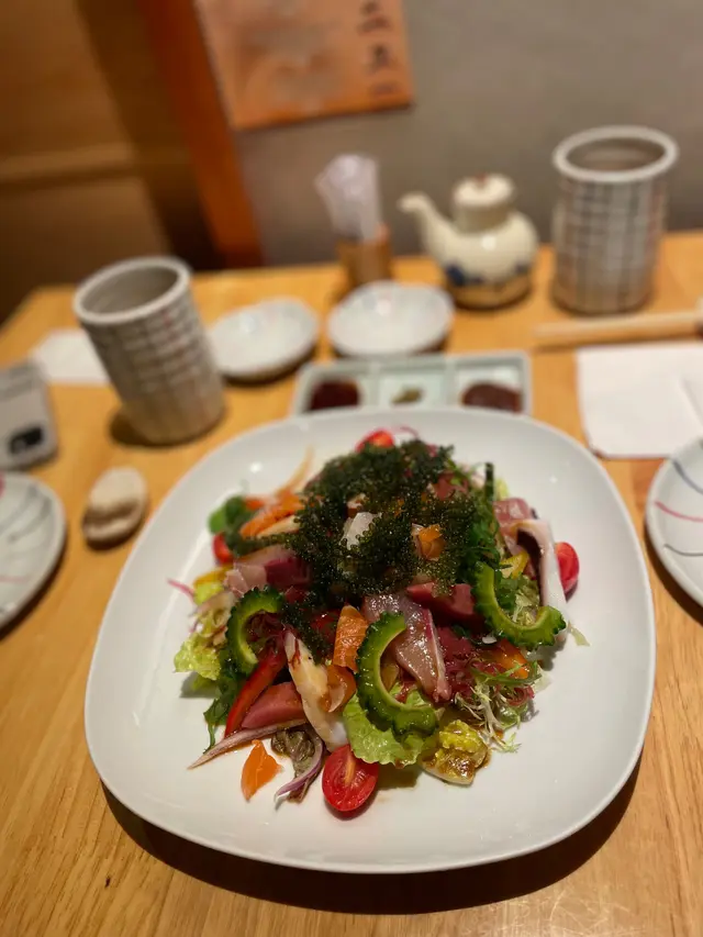 沖繩風沙律 ($138) 嚟咗幾次,都係第一次試呢款沙律。材料豐富,有牛油果、番茄仔、沙律菜,三文魚、八爪魚、苦瓜、海葡萄及帶子,未食海鮮之前見到呢碟沙律一定已經開心咗先!秋刀魚刺身 ($298)最鍾意食秋刀魚,雖然已經過咗最肥美嘅時候,不過依然好味!魚皮呈銀灰色,魚肉色澤紅潤,加少少混合咗薑茸蘿蔔茸及蔥花嘅醬汁一齊食,鮮味更香濃;店員之後將啲骨攞去炸,鹹鹹哋超級好味!冇諗過魚骨都可以咁正,成條魚食返晒,一啲都冇浪費活貝漁獲浜燒盛合 ($798)西班牙石蠔加咗高湯及清酒一齊燒到半熟,非常肥美質感creamy,海水味香松葉蟹腳一絲絲嘅肉,海水味好勁,店員已經剪開晒方便進食越南虎蝦有成隻手掌咁大隻,肉質爽口彈牙,蝦頭有好多膏南非鮑魚肉質超煙韌,店員建議配柚子胡椒醬,不過就算唔點任何醬汁都已經好好味岩手縣帆立貝清酒煮法始終係我嘅最愛,肉質厚身口感一絲絲又鮮甜,有清酒味不過唔過火北寄貝 ($198)肉非常非常厚,鮮味超級濃郁,啲湯載咗喺殼入面,食完仲可以當佢碗咁飲!夢之卷 ($168)近期餐廳同岩手縣合作,引入當地嘅食材,所以都試一款先!用吞拿魚粒、牛油果粒、三文魚子、三文魚、岩手縣紅肉蘋果一層一層砌成,賣相好靚,每一層都有唔同嘅口感,味道清新,非常值得一試!柚子雪芭 ($58)仍徘徊在似酸又甜之間,口感綿密蕃薯雪芭 ($58) 預先落單再放喺室温一段時間,等啲蕃薯肉都解凍埋,連埋雪糕一齊食,成個食晒咁先係皇道!…查看更多