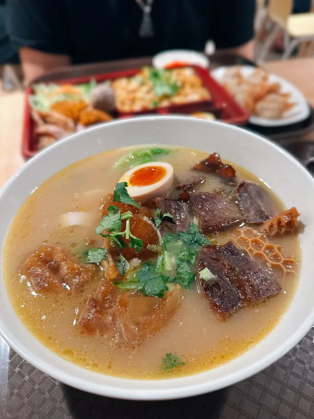 牛響度麵館位於黃埔Aeon地下美食廣場小店,價錢親民和份量大碗,餐牌以牛肉為主打🐮,特別適合鍾意吃牛朋友仔,環境簡約舒適不錯☺️💫沙茶牛雜湯麵 和 沙茶牛三寶湯麵🍜兩碗湯麵牛類新鮮入味,滿滿的沙茶醬香氣,湯底濃郁配上彈牙的麵條,特別喜愛金錢肚入味爽口,牛筋軟身,肉質鮮嫩,口感層次豐富,大滿足!🌟💫孜然雞翼雞翼炸得外皮酥脆,內裏肉質嫩滑,面灑上孜然粉及黑芝麻,熱辣辣香噴噴🔥絕對有質素🤩💫涼拌青瓜吃麵怎可以沒有配菜,加了一份小食涼拌青瓜清爽可口✨解膩又開胃,與牛肉麵完美搭配🥒💫跟餐樽裝烏龍茶及大麥茶☕️粲後飲茶🫖清爽解膩👍🥳…Read More