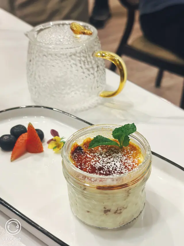 這間人氣法國菜餐廳位於尖沙咀The ONE,以各款特色流心牛角包及法式真空慢煮料理聞名,最新推出法式點心放題早午餐,可選擇一款主食,另外任吃鹹食及甜食。店內環境寬敞舒適,坐擁270度遼闊港九美景,午後的斜陽映入,氛圍浪漫優美,適合聚會或慶祝。90分鐘法式點心放題早午餐 - 優惠價$158(原價$388)另原價加一服務費供應時間: 週一至週日11:30-16:30威靈頓牛柳配芝士焗龍蝦 +$88威靈頓牛柳有著金黃色的酥皮,層次豐富不油膩,有濃厚的牛油香氣,夾著濃郁的蘑菇醬,牛柳脂肪雖小,但勝在軟腍多汁;芝士焗波士頓龍蝦肥厚飽滿,龍蝦肉緊實彈牙,半溶化的芝士醇厚濃郁;新鮮翠綠的黑醋沙律酸甜解膩。香煎挪威鮮三文魚 +$28兩大塊三文魚扒外皮焦香酥脆,帶着淡淡的油脂香,內裡保持着柔軟綿密好多汁,有多款烤蔬菜平衡膩感。法式龍蝦湯 +$18湯底濃稠絲滑,滿是海鮮的精華,龍蝦的鮮味被充分釋出,淡淡的奶油香與龍蝦的鮮甜完美融合,濃而不膩,鮮香醇厚。爆醬蟹膏流心牛角包 +$18層次分明的牛角包外脆內軟富牛油香氣,切開流出澎湃的蟹膏流心,有濃郁的蟹膏甘香,絲滑不粘膩。法國鴨肝醬多士鴨肝醬綿密細膩得入口帶化,有濃郁的脂香及鴨肝的鮮香,淡淡的鹹香中帶着一絲清甜。凱撒沙律新鮮生菜脆嫩爽口,染滿濃稠的沙律醬及巴馬臣芝士粉,奶香濃郁且酸甜適中,少許煙肉碎增添油香,還有酥脆的麵包糠。法式焦糖燉蛋頂層有一片香脆的焦糖,底層的燉蛋綿密滑順得入口即化,蛋香與奶香濃郁醇厚,帶着淡淡的香草香,不會過甜膩。開心果千層酥千層酥的酥皮層次分明,金黃酥脆富牛油香,鋪滿開心果奶油醬,絲滑順潤有淡淡的堅果香,撒滿開心果碎。爆炸糖三層朱古力蛋糕柔軟濕潤的海綿蛋糕,有濃郁醇厚的朱古力,苦甜平衡得剛剛好。白松露芝士蛋糕芝士蛋糕綿密細膩得入口即化,奶香濃郁醇厚,還有淡淡的松露香氣。法式可麗露 +$18外層金黃焦脆,有淡淡的焦糖香,咬開內裡柔軟濕潤好細嫩,有淡淡的香草香和蛋奶香。鮮奶抹茶 +$29.5鮮奶底醇厚絲滑,高品質的抹茶粉細緻滑順,帶有鮮甜的甘味和濃郁的香氣,苦澀味極低,入口清甜順滑。開心果拿鐵 +$29.5質地醇厚絲滑,奶香濃郁卻不厚重,有開心果天然的堅果清香及淡淡油脂香,順滑而不膩。…查看更多