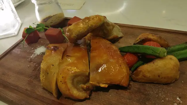 請了半天假做正經事,順便游個水之後,小妹悠閒地踢著拖鞋來到了美麗華的My Day。這是一個令你不自覺挺胸撥頭髮的優雅地方。淺綠色的牆身、白色的蕾絲、戶外的日落餘暉…原來是個婚禮場所。兩個字:浪漫。再來兩個字:優雅。再看看自己:……淑女!(一定係,除非唔係) 立即變身亦得!回歸正傳…這裡的dinner是semi-buffet形式。價錢由$268到$368不等,有海鮮拼盤、主菜、甜品拼盤、餐飲。湯和沙律則是自助形式。首先幫襯一下沙律吧。沙律款色齊全,其中我較喜愛的是螺肉沙律,火腿和煙三文魚等都有。亦有西瓜、蜜瓜、菠蘿等生果供應。海鮮拼盤Seafood Platter with Complimentary[半份龍蝦,海蝦,翡翠螺,松葉蟹腳,青口]按人數份量供應相片中的是二人份量。龍蝦大大隻,比我手掌還要大,中間好多籽,肉質彈牙,質素未算最好,但已經算相當唔錯,個人覺得蟹鉗內比較多冰水融出黎,不過唔影響肉質。(美中不足的是我的兩邊龍蝦不是同一隻,對唔埋的)松葉蟹腳亦新鮮,可以輕鬆地將整條肉拆件。質素滿意。蝦、螺和青口味道正常。(經我脆弱的腸胃測試:衛生合格!放心食用!)香煎深海比目魚柳配原隻南非鮑魚($328)Pan-Fried Ocean Halibut Fillet & Abalone紅花薯蓉/西芹頭忌廉汁/時令蔬菜點這個菜式之前,我猶豫了良久。因為我好討厭西芹,不過又很想食魚。最終還是點了,幸而西芹味很輕。(好彩!)面頭打了輕柔的泡沫,碟邊灑了龍蝦籽,魚皮煎得香而脆。肉質鮮嫩。這道菜相當高質。我最愛的是紅花薯蓉和龍蝦籽。口感smooth之餘,又帶有咸鮮氣息。而且輕怡,食落無負擔。鮮鮑口感彈牙,可以輕易用刀切開一半,蘸上些少薯蓉食,閉上眼睛,感受到鮑魚在齒間回彈的美妙感覺。每當你有減肥的念頭身邊邪惡的朋友就點了最邪惡的肥肥菜式這次朋友點了這個法式燒乳豬配法國血橙燒汁($328)Golden Roasted Suckling Pig Served with Local Green & Blood Orange Gravy不得不說的是,擺盤擺得幾靚,有顏色均衡的感覺。配菜有我喜愛的秋葵。(配菜是會轉換的,睇黎我運氣不錯)乳豬皮非常脆,咔咔聲地咬開,中間是滿滿的油脂(好邪惡呀)配上血橙燒汁是好好味。不過有點肥膩飽滯,口味濃厚,我只能吃到一舊。朋友則好勇猛地食完。甜品拼盤Dessert Platter這裡的甜品拼盤瞬間擄獲我的心。哪有女生不喜歡精緻又豐富的甜品呢?心花怒放~creme brulee 是我的最愛,這裡的也整得不錯,焦糖夠脆,蛋口感夠滑。然後芒果玫瑰慕絲杯美麗之餘也散發淡淡清香不酸,甜得不過份。餐飲無論是咖啡和菜都非常的香。很好!總結以dinner semi-buffet來說,三百幾一位不貴而環境和服務都很好,主菜味道佳,整體是四個字:喜出望外。難得的是這裡樓底夠高不焗束,所以優雅得來氣氛是輕鬆的,宜吹水。令你覺得自己既淑女得黎,又帶幾分踢著拖鞋、無拘無束的輕鬆歡樂感覺。…查看更多