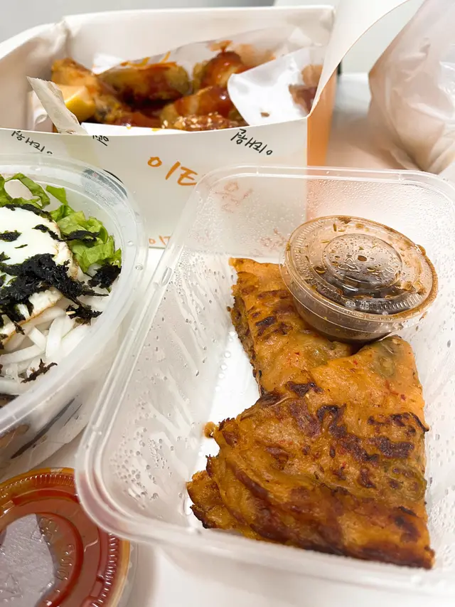 北區在太少韓式餐廳,晚上禁堂食,屋企人突然又想食韓式炸雞,於是在網上外賣平台上找了好久才找到這家🥲設定了19:45左右希望收到食物,非常準時呢😎· 半半烤雞(甜辣味/蜂蜜柚子味) $173全盒都是炸雞翼和炸雞髀搥,和我想象中有些出入,本來期望是有雞的不同部份🥲以為半半炸雞是一半甜辣味一半蜂蜜柚子味,但看上去似乎全都是甜辣醬,只是旁邊多了一片檸檬(?)不太明白是出錯味道還是混合在一起🌚但整體份量都不少👍🏼· 泡菜煎餅 $85應該是全部食物中較為滿意的一款了🤤· 牛肉石鍋拌飯 $85正宗的拌飯應該配菠菜,但這家就用生菜絲,有點奇怪🌝另外牛肉亦不是想象中的牛肉片,而是類似免治牛肉😂欣賞的是就算沒有用辣醬,整個飯都好夠味,是飽肚之選👍🏼ㅤㅤㅤㅤㅤㅤㅤㅤㅤ 🅣🅘🅟🅢 以上價錢為網上外賣平台上的定價,相信與堂食定價不同呢~但現時網上外賣平台上叫這家餐廳滿$200有八折優惠🐼…查看更多
