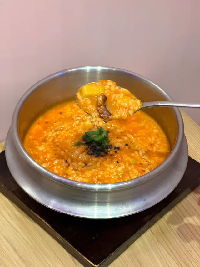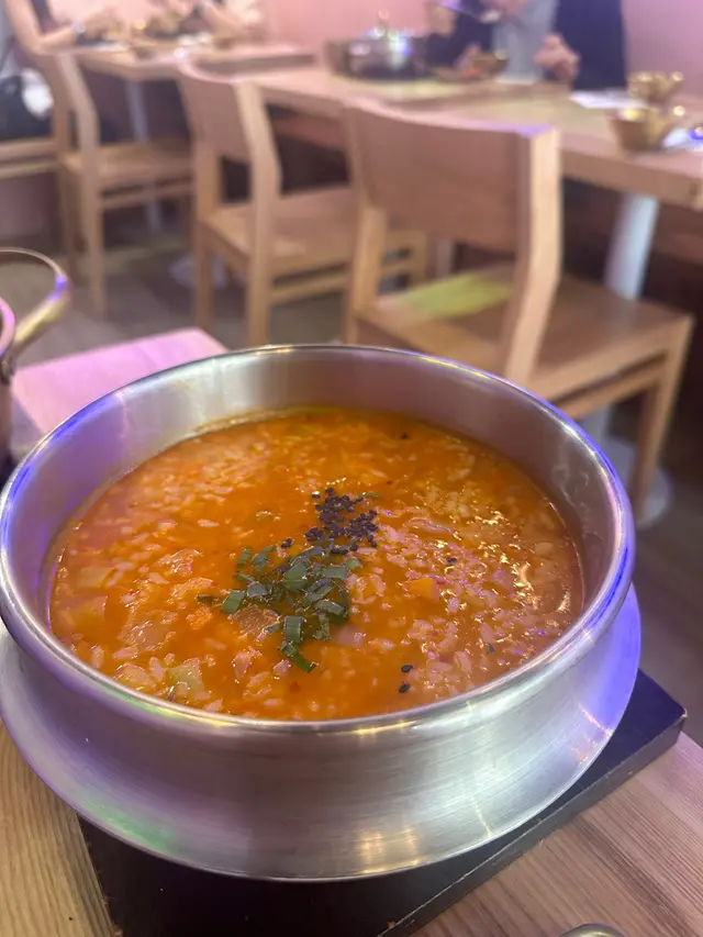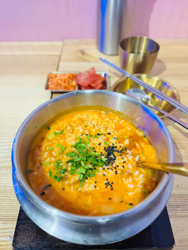 自從由濟洲去完旅行番嚟✈️ 一直都念念不忘韓國粥 最近發現原來尖沙咀哩間粉紅色小店少有有賣韓國粥 決定去尋找濟洲嘅味道👅🔸泡菜章魚粥 $128泡菜粥 雖然睇落紅卜卜 但食落甜而不辣 唔會太鹹味道啱啱好👍🏻✨ 除咗切粒章魚🐙同泡菜 仲有大量嘅配料 有薯仔 🥔 紅蘿蔔🥕洋蔥🧅 面頭仲有啲黑芝麻 食落非常豐富😋🔸釜山魚糕烏冬 $108 🍲賣相別具特色 筷子掛住上烏冬 似「烏冬瀑布」 🌊 仲有一大串各式各樣嘅魚糕 🍥🍢豆卜絲唔係而且吸滿湯底 雖然海帶湯底少許偏咸 烏冬滑捋捋幾煙靭👍🏻 不過要快啲食 如果唔係有機會會浸腍😝🔸蒸泡菜餃子 $78 🥟餡料除咗豬肉同泡菜 而且仲有少少粉絲 食落都幾辣🔥唔食得辣要三思🤣餃子皮煙靭 建議盡快食 放耐左有機會變硬本身諗住試吓佢哋嘅鮑魚餃子 個人未食過 幾有特色 但當日咁啱賣晒🥟 佢哋韓國粥味道唔錯 有機會會試吓佢哋嘅鮑魚粥😝…查看更多