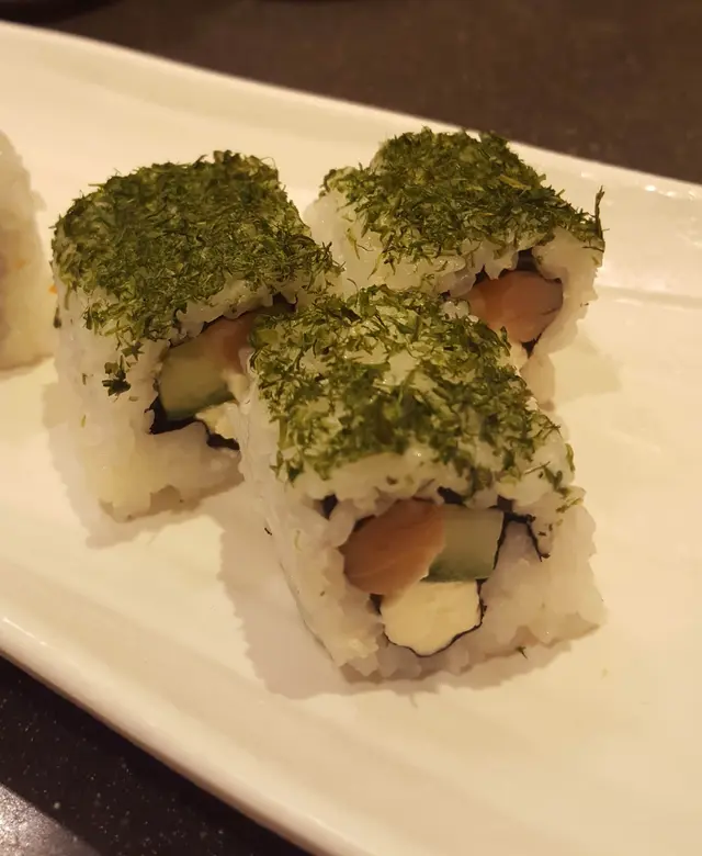 厚燒玉子 ($18/1件) & 三文魚三味 ($25)甜甜的玉子且暖暖的夾著飯來吃,比起冰冰的玉子壽司~我更喜歡這種。跟前者的三味一樣,是3件的組合。特地點來給家人吃~~松葉蟹牛油果軍艦 ($16)我是因為看到有牛油果才點的~很香很軟滑。不過松葉蟹肉就一般,勝在量多...用口感來填補了不夠鮮的味道卷物方面 炸軟殼蟹芝士卷 ($22) - 軟殼蟹尚算香口鬆脆波士頓卷 ($18) - 感覺就是在吃芝士就是了牛油果軟殼蟹卷 ($16) - 不太喜歡這個卷物入面還有豆 >< 如果單吃壽司的話不知道要吃多少才夠飽 Orz所以烏冬也是必點的。野菜餅烏冬 ($28) 野菜餅炸得很香脆!!湯烏冬來說有點淡味~~日本溫泉玉子烏冬 ($28/溫)這個吃過一次就喜歡上了~吃前要先將溫泉玉子好好的與烏冬拌勻充滿了蛋香,烏冬也是較為彈牙的。日式燉蛋 ($18) 不知是不是調味落得太重手?!這次吃覺得好鹹 QAQ最後打算走時看到迴轉帶出現了這個甜品,當然要吃埋才走吧!!抹茶紅豆蛋卷 <~ 這個才餐牌上是沒有的。別看這個中間有很多奶油會很膩~完全沒有這樣的一回事呢,也不會很甜。不過抹茶味的話就算不上很濃。…查看更多