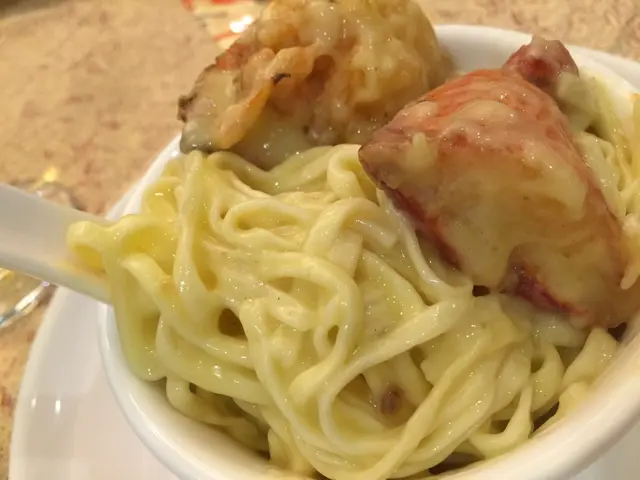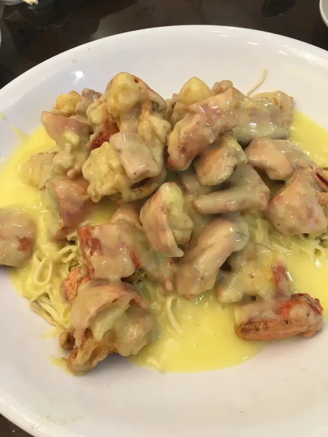 既然食開肉啦,就唔好俾佢停!!因此我地仲叫左隻跳舞雞黎食~呢隻雞嘅味道同燒雞嘅味道好似,可能因為都係燒出嚟嘅,師傅把握嘅火候非常好,雞皮香脆甘香!波士頓龍蝦伊麵係滿滿嘅芝士香味,好啱我食!龍蝦大大件,又爽口又彈牙又鮮甜,加上麵質口感軟硬適中,很美味!呢餐食得關懷又唔貴,GOOD