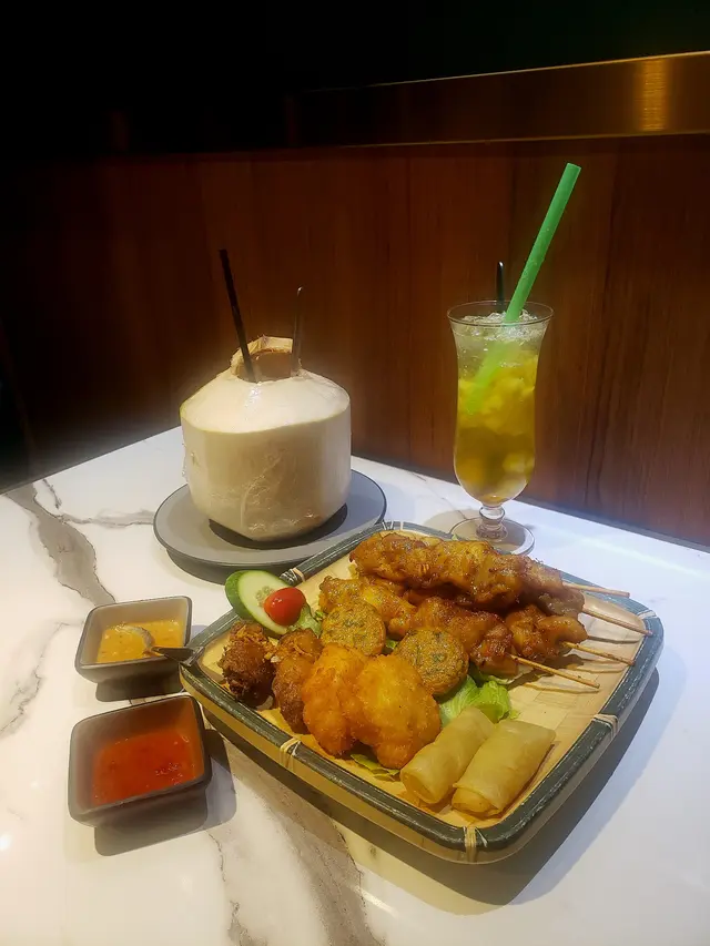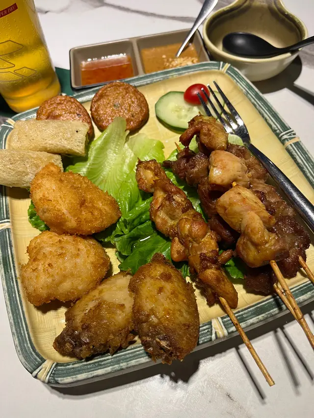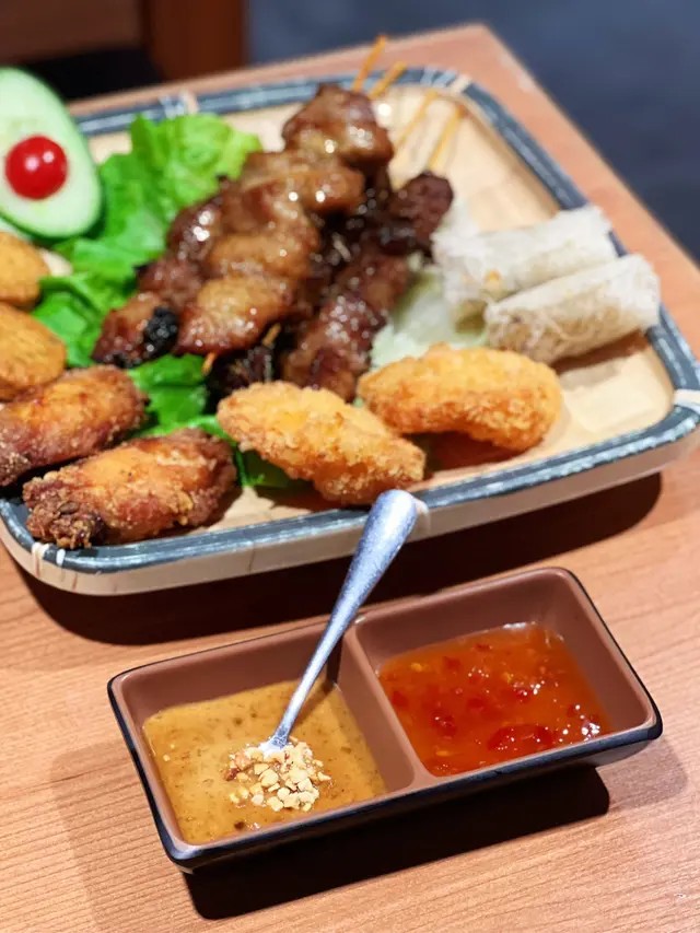 餐廳環境都幾舒適,大部份都係卡位,唔會好迫👍🏻燈光少少昏暗,加上餐廳佈置走泰國風,營造咗一種泰國餐廳嘅氛圍,幾有feel👍🏻1. 泰式小食拼盤 $168小食拼盤嚟講,款式都幾多,有魚餅、春卷、蝦餅、雞翼、兩款串燒,每款都有兩件。味道就不過不失啦,不過上到枱每一件炸物都係熱辣辣,好明顯即刻炸起👍🏻2. 黃咖喱牛肉 $128咖喱都幾香,不過就偏水,完全唔杰身,牛肉係牛腩嘅位置,不過就煮得有少少老,肉質有啲嚡口。3. 泰式炒粉絲128粉絲食得出係泰式粉絲,有少少野菌同蛋炒,不過份量唔多,而且粉絲比較乾身,好快就黐埋一舊,味道冇乜特別,唔算好食。4. 冬陰功海鮮湯$148冬陰功湯偏酸,辣味唔算勁,海鮮嘅份量都幾多,啲蝦都算大隻👍🏻(以上價錢未計加一服務費)值得一提嘅係,OpenRice訂座有八八折,晚市時段都有呀👍🏻利申:並冇任何試食活動/優惠!全部正價!(按餐廳MENU上價格付款)…查看更多