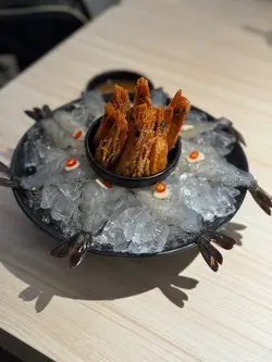 大圍隱世泰國Fusion菜出去做野係大圍收工,突然間想食泰國野即刻搵返之前朋友介紹過大圍呢間隱世小店,泰中意今日咁啱我早收工,所以有位,正呀泰式虎蝦刺身 $178 每隻蝦刺身上配有一片仔蒜片同一片仔辣椒,加上泰式刺身醬,超級惹味,好正,最特別係佢個蝦頭竟然會炸到脆卜卜,可以食埋,平時泰國餐廳叫蝦刺身都冇蝦頭食,呢到有得食,幾特別唔錯唔錯👍🏻泰式海南雞飯配香茅油飯(半隻$138)無骨雞肉配上三種海南雞飯嘅醬料,啖啖肉超正,雞肉好滑唔柴口,油飯有啖淡嘅香茅味,雞份量大到食唔哂打包泰式炒金邊粉 $95個人認為食金邊粉最緊要係加青檸汁,加左真係會錦上添花,金邊粉配上爽口嘅芽菜同埋花生碎蝦粒同豆腐干,大大份好抵食泰式沙嗲串燒(六串)$75食泰國嘢,點少得串燒啊!六串沙嗲串燒,豬牛雞,各兩串,個人認為豬串燒比雞同牛出色蜜糖青檸梳打 $38青檸梳打就飲得多喇,加蜜糖就真係第一次,加蜜糖幾有驚喜,蜜糖比較香甜,罪惡感冇糖漿咁大,鍾意飲青檸梳打嘅朋友可以試吓呢款蜜糖青檸梳打總結黎講,想食泰國嘢都可以黎一試,但係記得一定要book位,因為平日收工都滿座…查看更多