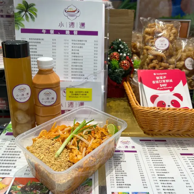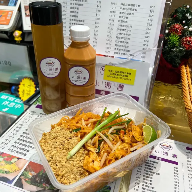 今次嚟到小清邁搵食! 屋企附近的餐廳食到悶悶哋今日特地由柯士甸買泰國菜返屋企食小清邁是一間外賣小店、門口站着2隻泰裝的木製娃娃之前經過幾次已經被櫥窗的泰式甜品吸引。雪櫃內的綠色飲品也非常令人注目。小店12點-9點都可以買套餐、價格十分抵。泰式炒金邊粉 ($58)泰菜必吃嘅金邊粉、份量放滿一整盒。味道酸甜適中、雞蛋、雞肉、豆腐份量多以外、花生碎也不少。比較可惜是配檸檬而非青檸、清新的感覺稍遜。椰香青咖喱雞飯 ($52)滿滿的雞肉和滿滿的咖喱汁!咖喱之中我最鍾意青咖喱、加上濃濃的椰汁微辣中帶甜、不會太刺激牛肉串燒 ($54)牛肉有點乾、不過加上沙爹汁還不錯椰汁西米糕 ($24)椰汁西米這永遠討人歡心的甜品、喜歡它不是以葉包着、吃時比較方便龍眼水 (跟餐+$10)龍眼肉佔了半樽!!味道不會太甜、龍眼可以一解泰菜的熱氣為整餐劃上一個完美的句號…查看更多