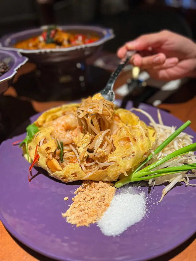 餐廳裝修以粉紅色為主題,於聖誕期間,店內還擺放了一顆粉紅色的聖誕樹,打卡一流。餐廳設有海景座位,很適合打卡。燒雞扒配青木瓜沙律(HK$128)燒雞扒外皮香脆,雞肉嫩滑入味,青木瓜酸酸甜甜,非常開胃。冬蔭煙肉忌廉意粉(HK$148)好喜歡這個fusion菜式,意粉好creamy,味道香濃而帶點微辣,非常滋味。泰式炒金邊粉(HK$148)金黃色的蛋網包著金邊粉,賣相吸引,味道也非常吸引。印度薄餅(HK$40)薄餅大大片。蝶豆花茶(HK$45)顏色好夢幻,口感清新。…查看更多