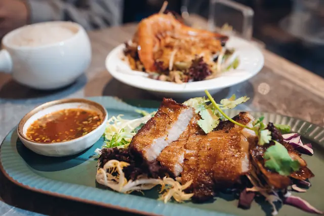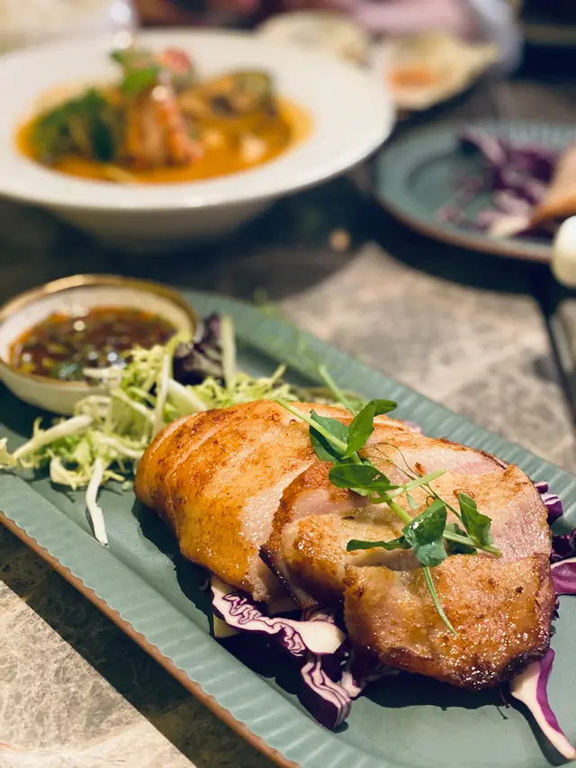 上個星期Blue Monday去了一間浪漫的泰國餐廳 - 享慢煮泰 @lemongrassbyfastgourmet 🌺 享受了一餐美食,瞬間變Chill Monday了!..來到堅尼地城的這間餐廳門面,就看到裡面環境很有情調呢!💕 這裡的dinner set有分two-courses, three-courses同four-courses, 方便客人搭配出不同組合,總之主菜一定是其中一樣就可以。我們當然要點4-courses dinner set食多點美食呢..🥐冬蔭龍蝦湯流心牛肉包一切開就流哂湯汁出來,很香啊!冬蔭味好重但又唔會辣,配埋龍蝦湯勁惹味🤤..🥗 龍蝦鳳梨沙律 及 泰式大蝦柚子沙律龍蝦肉沙律搭配鳳梨好fresh呢,加上大量沙律菜鋪在底,好清新好開胃🤩 泰式大蝦真係成隻大大隻鋪係面,勁吸晴!加上柚子同少許花生碎及大量沙律菜,勁爽勁有口感!..🌶冬蔭龍蝦汁燴海鮮呢個好正,成碗湯連海鮮,再配白飯另上,真係好適合撈飯😻 冬蔭龍蝦湯係出色既,湯頭濃郁惹味,而且好足料,有大蝦、青口、帶子,好好味😋..🥘瑪莎曼咖哩和牛面頰同上都會有白飯另上,又係撈飯一流啊!和牛面頰燉得好軟腍,吸收哂惹味咖哩,好入味!..🦞蟹肉流心蛋龍蝦汁燴飯一見到燴飯,就知一定勁重龍蝦味🤤加上有蟹籽蟹肉係面,督穿埋面頭既流心蛋,將蛋液撈勻,好juicy好濃郁既龍蝦味,好得!..🍗泰式燒西班牙黑毛豬頸肉每次去食泰菜都必點豬頸肉,因為泰式豬頸肉燒得夠火喉,好有口感!採用西班牙黑毛豬頸肉,肉質肉味無得頂👍🏻..甜品分別點左 真空慢煮法式焦糖燉蛋🍮泰式奶茶流心牛角包🥐椰子雪糕配風乾鳳梨及紫糯米🥥官燕椰汁燉蛋白伴北海道紅豆🥛 焦糖燉蛋好香好滑好好味~泰式奶茶流心好正啊,完全食到泰式奶茶既濃,好正宗!椰子雪糕好香但又唔會好甜好漏,撈埋紫糯米好特別,增加左口感😋 官燕燉蛋白真係見到一大pat官燕係面😍啱哂女仔養顏!燉蛋白好滑好香,配紅豆剛剛好!..🍅蘋果薑汁 同 🍇有氣紅提子汁蘋果薑汁呢個配搭好新奇,未試過😆蘋果既香甜與薑汁的辣互相交融,反而中和了兩者的極端,帶來更清新既味道,亦都好潤咁~ 有氣紅提子味,簡直係fresh,勁解渴!..好滿足既一餐啊☺️ 好高質既泰菜,環境加分,食得舒服又滿意!…查看更多