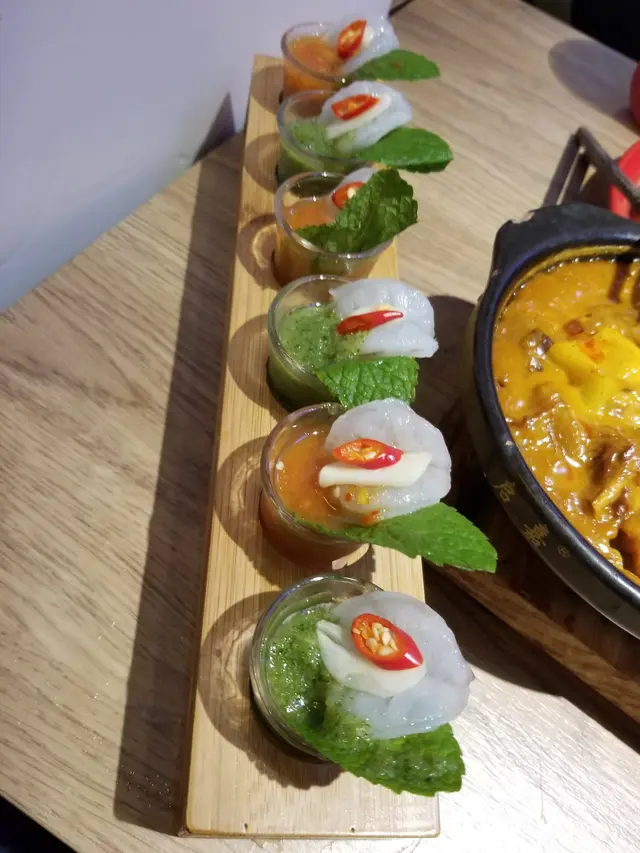 之前喺呢間餐廳食過午餐,覺得味道唔錯,所以今日我哋一行三人就嚟呢度試吓佢哋嘅晚餐,最驚喜係佢哋嘅火山排骨,應該係呢度嘅招牌,我見個個都叫,送上我哋枱面嘅時候仲係好多「火山煙」😂我哋叫咗以下菜式: ✨泰式生海蝦食泰國菜點海蝦刺身是常識吧。呢度嘅生蝦新鮮彈牙配咗兩個醬汁,一排就綠色醬汁,而另外一排就係橙色醬汁。蝦肉彈牙且無腥味,所以配咩汁都好食,但係唔食得辣嘅,就記得拎開啲辣椒,唔係就辣親自己。✨肉碎生菜包呢道菜以新鮮的生菜搭配香煎肉碎,口感清爽又不失濃郁。肉碎調味恰到好處,同平時啲肉碎唔同佢加咗青檸,所以感覺更加清新。✨火山排骨呢道菜以其霸氣的外觀吸引目光,排骨堆成「火山」形狀,而且佢放咗乾冰,真係好似火山咁行出嚟。除咗賣相之外,呢碟火山排骨都非常之惹味,湯汁的酸辣平衡得宜,配以香料如香茅、檸檬葉增添泰式風味。排骨軟嫩,肉質入味,帶有微微的辛辣,唔怪得台台都叫呢碟火山排骨啦。✨泰式明爐烏頭魚明爐烤製的烏頭魚,魚肉細嫩多汁,並帶有濃郁的魚香。配以泰式酸辣醬及檸檬,能有效去除油膩感並提升整體味道。入面嘅配菜:蘑菇同粉絲,都吸入魚肉同湯汁嘅鮮味,除咗食魚之外,記住食佢啲配菜啦。✨泰式鐵板蠔煎鐵板蠔煎以外酥內嫩的口感為主打,蠔的鮮味與雞蛋的香氣完美結合,配搭醬料更為呢度菜增添酸甜層次。✨椰汁冰同檸檬茶椰汁冰甜度適中非常解渴。而檸檬茶就正常發揮。呢間餐廳碟碟餸都各有特色,尤其最鍾意火山排骨,肉碎生菜包同泰式生海蝦。另外,餐廳環境同裝修都好特別,我哋真係坐喺嘟嘟車上面用餐。…查看更多