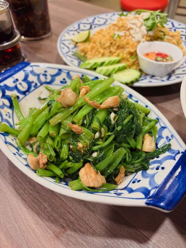 有各式各樣既泰式🇹🇭神像同街道卡通畫,幾特別既係連店員既制服都寫住Ashley 21, 係亞士厘既意思~ 野食有風味,幾有鑊氣同有油水,份量幾大又唔貴👍🏻(5 😍 係滿分,🤩係半分)泰式脆燒肉炒金邊粉 🇹🇭🐷🔥🍜 - $108 (好味指數:😍😍😍😍)味道豐富,因為落左羅望子醬、棕櫚樹糖🏝️、魚露🐟等等,所以集酸、甜、鹹於一身~ 上面鋪滿左燒肉🔥🐷,表皮香脆唔會硬,啲肉顏色粉嫩,係半肥瘦既,有鹹香同豐腴既油香🤤 亦有香口既蛋絲🥚、清新既豆腐⬜️、爽口既芽菜、香口既花生碎🥜,金邊粉軟腍,亦可以濟啲青檸汁🍋🟩落去就再refreshing啲tim~ 泰式蟹肉炒飯 🇹🇭🦀🔥🍚 - $138 (好味指數:😍😍😍😍)真係落足一梳梳蟹肉🦀去炒👍🏻 質感綿密軟糯,味道鮮美,亦落左唔少香口既蛋🥚、清新既蔥同洋蔥🧅去炒🔥,亦有泰國香料🇹🇭🌱做調味,包括香茅、南薑🫚、檸檬葉🍋🌱、魚露🐟、檸檬汁🍋等等,整體幾香口,亦都炒得夠乾身,粒粒分明~泰式蝦醬炒通菜 🇹🇭🦐🔥🥬 - $58 (好味指數:😍😍😍😍😍)有濃郁醇厚既蝦醬🦐味道,亦有蒜頭🧄、辣椒🌶️、魚露🐟、蠔油等做調味,集鮮味、鹹香同微辣🌶️於一身,惹味香口,而啲通菜🥬入晒味,顏色翠綠,亦炒得久耐唔會硬,用嚟送飯一流👍🏻泰式雜錦海鮮煎 🇹🇭🦐🦪🫓 - $128 (好味指數:😍😍😍😍🤩)呢個幾得意,係濕潤版既蠔餅🦪🫓🤩 有超多海鮮,包括有爽口既蝦🦐、彈牙既魷魚🦑、鮮甜嫩滑既蠔仔🦪,帶有豐富既海鮮鮮味,配埋足料既蛋🥚,香口惹味,亦可以點酸甜辣醬🌶️食就更加開胃🤤西瓜沙冰 🍉🍧 - $48 (好味指數:😍😍😍😍🤩)好大杯🤩 有天然既西瓜🍉香味,味道清甜解渴又可以清熱,質感軟滑,上面仲有西瓜球🍉可以食tim😜椰奶沙冰 🥥🍧 - $68 (好味指數:😍😍😍😍🤩)呢個仲大杯😂 有芳香馥郁既椰子🥥香味,味道清新香甜,消暑解渴,質感軟滑,上面仲有煙韌清新幾椰子肉🥥可以食ga好味指數:😍😍😍😍🤩推介指數:😍😍😍😍🤩…Read More