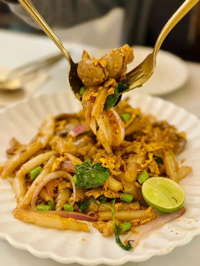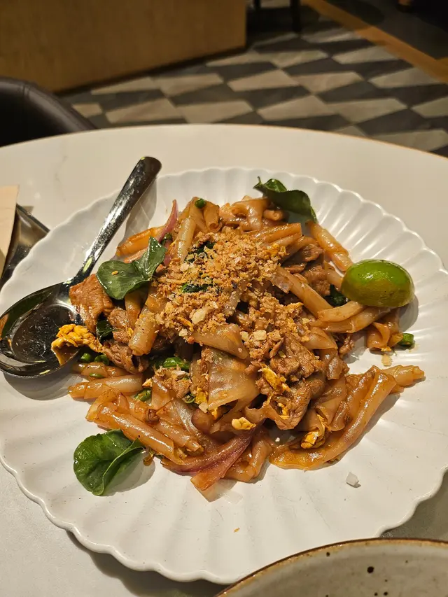 呢間餐廳以Thai Western Café 為概念🌴主打傳統泰菜同摩登泰西Fusion 菜餚,例如充滿泰式風味嘅意粉、精緻手工甜品同新派泰式飲品等🇹🇭💗脆炸軟殻蟹米紙卷配牛油果醬 ($128/ 6件)香脆可口嘅炸軟殻蟹配上口感煙韌嘅米紙🦀中間加咗香葉同子薑🌿再蘸埋牛油果醬同冬蔭功沙律醬,味道清新開胃🥑💗泰鹹蛋黃金單骨雞翼($78/ 10件)香茅單骨雞翼炸得金黃香脆,每件都沾滿濃郁起沙嘅鹹蛋黃醬🐣💗炭燒虎蝦串燒 ($64/ 2件)炭燒虎蝦大大隻,肉質爽口彈牙🦐💗炭燒魷魚鬚 ($58/ 2件)炭燒魷魚鬚脆嫩爽彈,充滿炭火香🦑💗泰式醉貓炒黑毛豬肉手工卷粉($138)選用泰國空運直送嘅新鮮手造卷粉,口感煙韌Q彈🍝再加入雞蛋、豆角粒、香葉、豉油、紹酒等醬汁炒成,惹味而且鑊氣十足🍳再加上大大塊黑毛豬肉片,簡直令人回味🐖…查看更多