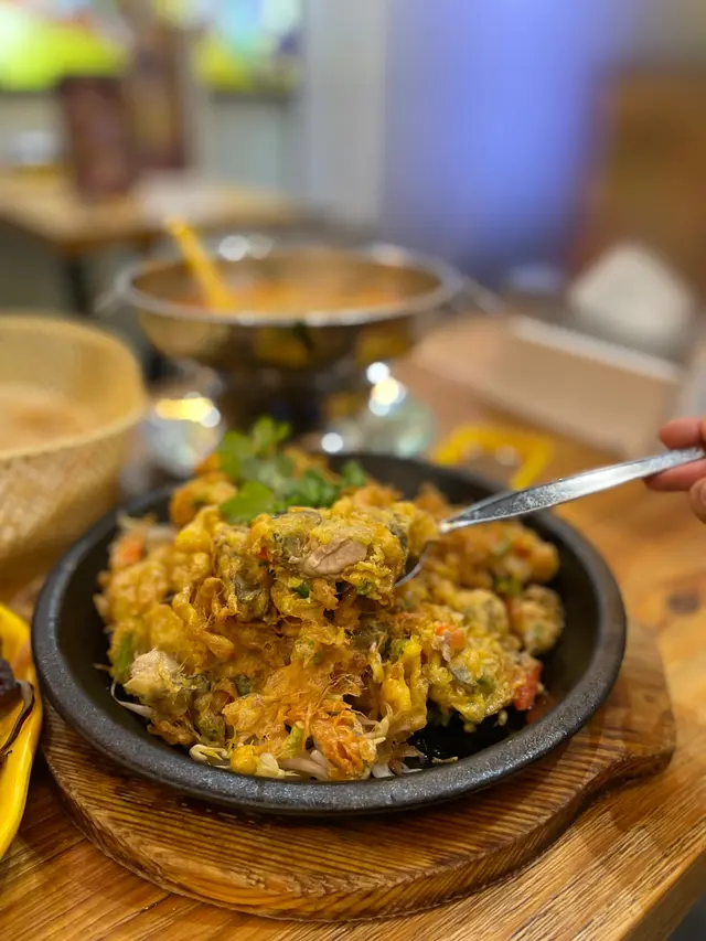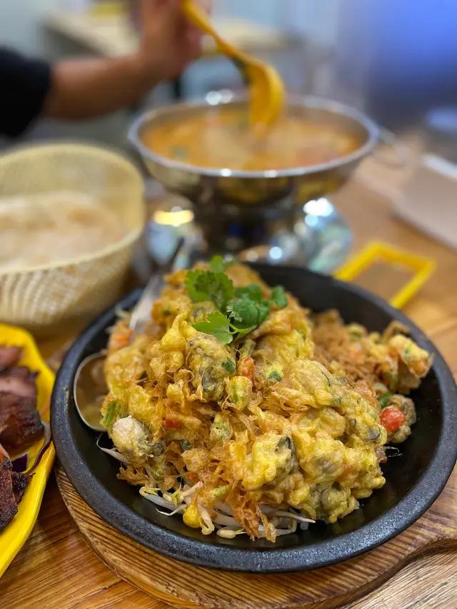 呢日去左元朗朋友仔屋企聚會幾個朋友去搵餐廳食晚飯 我地揀左呢間人氣泰國餐廳食晚餐餐廳廚房部係泰國人主理 裝修碗碟以黃色為主/🔸 冬蔭公湯 ($138)(2-3人份量)冬蔭公湯份量十足 一煲可以分到大約6碗湯湯料有兩隻原隻大虎蝦 超足料 蝦肉肉質彈牙我哋揀咗少辣 湯嘅香茅味好出飲落有輕微酸辣度 好醒胃😋/🔸 泰式燒羊架(兩件)($128)羊架入口好juicy又惹味 燒得焦香又脆邊的確有係泰國街頭食串燒既感覺/🔸 泰式鐵板蠔餅 ($128)嘩 用鐵板盛載 熱辣辣炸炸聲咁送上枱 蠔餅超大碟 又勁香 夾有粒粒蠔仔餅底炸到勁酥脆 一夾落去係咯咯聲架蛋味很香濃 入面有蔥花及紅椒粒沾上泰式甜辣醬食 更惹味啊🤤/🔸 風味燒豬頸肉($118)豬頸肉份量好多 有十塊大塊厚切片 燒得剛剛熟透 唔會太韌或太乾沾上醬汁酸酸甜甜的 食落有點香蒜味 /🔸 小曼谷炒米粉($108)配料有蝦 雞蛋 菜等 炒米粉好大碟食落有濃濃咖喱香味 米粉炒得乾身又有鑊氣 /🍸 菠蘿沙冰($42)🍸 芒果沙冰($42)兩杯飲品都有新鮮水果味 唔會太甜 好味…查看更多