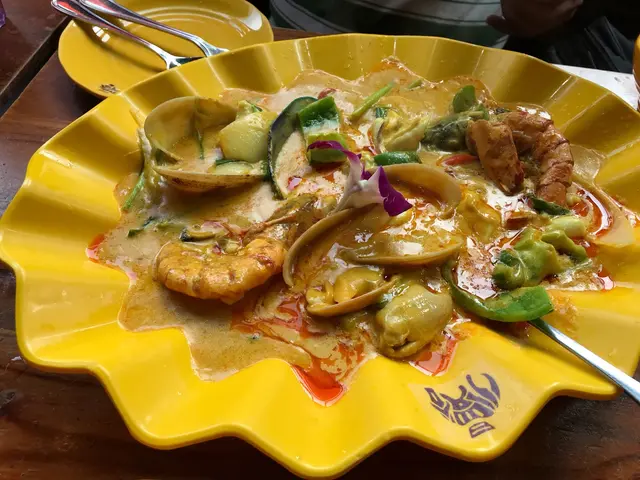 呢排係甘比飛泰國既posts洗版,我除左羨慕就係非常羨慕,飛泰國既機會暫時不是我的,一於去食泰國菜止下癮!係九龍城太子道西有間小曼谷海鮮燒烤屋,門口擺左個招手吹氣公仔,非常吸引眼球!泰皇咖哩炒海鮮($246)滿滿既咖哩汁加上大蝦、青口、蜆、魷魚等豐富海鮮,配埋泰式原味烤酥餅($32)去蘸咖哩汁。泰式臘腸($20)男朋友堅持要叫,佢話泰國臘腸係唔同普通腸,味道同口感都正好多,我自己覺得入口比較甜同重香料味,送酒一流!泰式木瓜絲沙律($72)醒神開胃既青木瓜沙律,份量唔算大,不過好多花生,岩曬鐘意食香口花生既朋友。泰式拼盤(小)($149)有蝦餅、魚餅、春卷同雞棗,蝦餅、魚餅夠彈牙,春卷同雞棗炸到好香,同朋友share就最好啦!泰式鮮蝦炒金邊粉($89)未算超級熱辣辣,但料都算豐富,同埋金邊粉炒得好,夠煙韌。原本諗住可以食埋芒果糯米飯同椰汁糕,點知太飽,睇黎都要留返下次!…查看更多