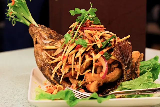 九龍城出名多家庭式經營的食店,也有一段時間沒來九龍城尋食了,知道這區近排開多了很多新食店,今日一於來過九龍城尋食記吧!先選一間泰國餐廳來吃吃,泰皇閣是區內新開的泰國菜之一,位於九龍城最入的一條街,位置相較小XX, 黃XX 輸蝕,但食物就比前者有特色了!由於之後再會去其他食店尋食,在這兒只選了幾款菜色來吃。餐廳環境坐得舒服,不會似一般泰國餐廳很逼迫,燈光也光猛。菜式選擇很多,也有些菜色是一般泰國餐廳找不到的!點了蛋包鮮蝦金邊粉$70, 泰皇秘制鰂魚沙津$168及燒豬頸肉$72。炸蝦片是今位都會送的,但餐廳不會另收加一,茶芥!燒豬頸肉$72: 泰國菜一定要食食燒烤類呢! 燒豬頸肉一客份量很足,每塊切很厚度均一,外邊帶炭烤過的焦邊啡色,入邊則是令人心動的豬肉紋理。吃下,豬頸肉炭烤香味濃郁,豬頸肉不會被燒至乾柴,入口具彈性,當中的脂肪位還是爽囗的,原來這兒用的是新鮮豬頸肉,非雪藏貨式,難怪肉質比一般吃到的不同。經常認為醬汁是泰國菜的靈魂,每間的醬汁都有些兒不同,這兒的醬汁惹味,但若然酸味可更重一些, 如多帶一些檸檬葉,青檸等的酸味就更好了。泰皇秘制鰂魚沙津$168:這個真的是來到這兒必點的菜色! 無論賣相上到味道都是令人Wow的!原條的鰂魚奉桌,魚肉起了拿去炸,餘下的魚身連骨炸後則用來做裝飾。沙津中包含青木瓜絲及大量料頭,老闆教我們要木瓜絲加魚肉一齊食,食味會變得更 豐富。吃下,先是魚肉外皮的酥脆,內裏肉質的滑嫩,囗感層次分明。鰂魚本身細骨有好多,廚師竟然可以將魚細骨清理得乾淨, 真的令人驚訝!食味方面,酸甜辣混集於一囗中,令人有驚喜!頭尾都不要浪費呀,魚尾像薯片般脆身,頭連隻骨頭的背脊位,內裏肉質十分滑嫩的! 一路食一路向媽媽讚道魚好食!媽: 我知呀!你食唔停囗!十分推介!坦白講,一定會為呢條魚再黎泰國閣!蛋包鮮蝦金邊粉$70: 蛋包菜色不只是日本菜的專利,泰國菜也可以! 蛋包飯吃得多,不如試下蛋包金邊粉! 蛋煎成金黃網紋形狀,上邊放上三隻蝦。 金邊粉炒得很有穫氣,不會過乾,又不會太油。吃下去,金邊粉軟熟中帶些回彈感,調味也很適中,有少少蕃茄醬的酸甜味,撈埋啲花生碎食(新年要撈起撈起,撈到風山水起),很惹味呢! 我和媽媽未食的時候已經感到有些飽了,豈知最後竟然可以清碟呢!餐廳食物全部大大碟,食品質素高,有驚喜,比起同區一些老牌泰國餐廳質素還要高,性價比十足呢!______________________________泰皇閣 Thai Palace Restaurant地址: 九龍城啟德道17號地舖…查看更多