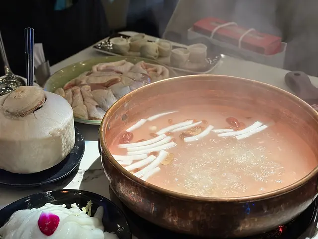 我講緊既佳麗係打邊爐D配料姐,你話如果一枱都係雞子三千!!肥牛三千!!鵝腸三千!!鴨血三千!!你都咪話唔過癮,打住邊爐緊係心火盛,咁就要啤啤佢啦,如果唔係點會有鬼佬涼茶既美譽呀!👇🏻📌招 牌 推 介 - ▪️ 海 南 椰 子 文 昌 雞 鍋 - $288▫️ 佢地湯底有好多選擇,我就揀左個招牌「海南椰子文昌雞鍋」,staff先將文昌雞放哂落湯底先,再倒哂成個原隻新鮮椰青水煲滾佢,一開蓋果種清甜鮮味好突出,建議先飲啖湯先,入口個椰香清甜到不得了,文昌雞食落肉質亦唔鞋口,相當嫩滑,呢個湯底絕對係大熱!▪️ 火 鍋 配 料 - ▫️「特級封門柳」雪花分佈均勻,只係需要灼6秒,牛肉入口即化,肉質嫩滑,濃濃牛香味係口腔揮之不去,好食。▫️「美國Prime牛小排」入口油香味突出,食落好有咬口,牛味又係極濃,肉裡面相當Juicy,就算嗌多碟都唔會食到膩!▫️「台山蠔」肥美又大隻,色澤睇落乳白色,食落味道鮮甜又無渣,極富有彈性。▫️「珊瑚蚌」新鮮爽口,絕對係打邊爐恩物!▫️「蟶子皇」夠哂大隻,口感極富彈性,鮮味十足。▫️「麻辣鴨掌」呢個唔洗烚都可以食得,鴨掌吸收哂辣汁既精華,食落膠原豐富,夠哂滑溜。▫️「花甲王」一碟份量比想像中多,每隻都大大隻,相當新鮮,肉質清甜爽彈,好抵食。▫️「蕃薯蜆」建議唔好烚太耐,一開口就要撈上黎食,呢隻肉質飽滿,口感滑嫩,又有鮮味,正!▫️「黑蒜牛丸」都係第一次試呢種牛丸,一咬落好似醬爆牛丸咁爆漿,裡面黑蒜味亦好濃郁,幾有驚喜。▫️「花膠」原塊花膠灼完入口係極緻既膠原,完全係一眾女神們必備既養顏良物!▫️「芫荽餃」天氣咁凍整返碟餃,暖下胃就基本啦,整體非常抵食,而且場內仲有唱下K,一大班friend黎打住邊爐chill下,。…查看更多