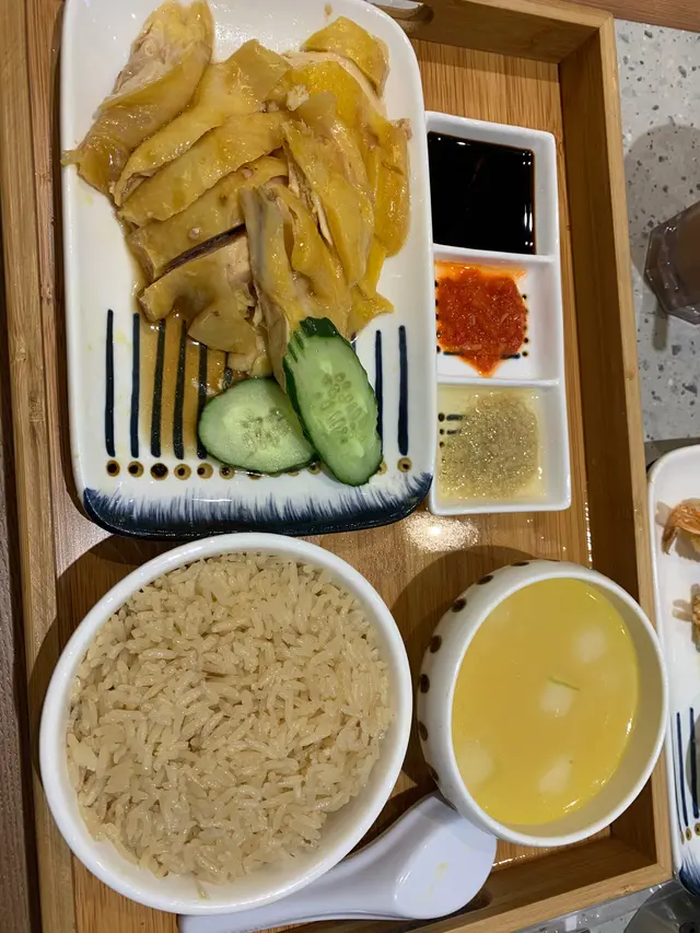Emmm.. 海南雞飯88蚊呢個價位係抗疫時期都企得幾硬下。如果88蚊性價比黎講,個飯有啲貴。雖然餐廳有少少南洋風裝修。餐廳除左海南雞飯外都有啲喇沙嘅選擇,但叫完海南雞會即上(因為可以整定),但見隔離枱海南雞飯食完喇沙都未到就有啲老尷。好!海南雞飯!驚起嘅係個冬瓜雞汁湯飲落去係熱到辣口嘅雞就去骨三黄雞,油脂充足(減肥中既朋友就去皮叫白飯唔好點汁啊),雞肉唔會鞋同唔乾,正常發揮。我就比較好奇佢海南雞飯醬係咩環境,薑蓉溝左啲沙薑;辣汁有食辣生蝦感覺;豉油醬我不嬲麻麻,只食到甜味,無咩點過~到個雞油飯,其實有啲失望,一黎唔夠熱又鬆散,可以我孤陋寡聞,佢夠水份嘅,唔爛嘅,但如果可以團結到少少就好了~(定南洋啲米都係咁,而我唔識)飯量黎講,男仔就未必夠喉,所以⋯我忍唔住叫左小食。本身都只係想叫咖央多士,22蚊。 但做緊優惠,38蚊兩款小食,好喇,叫埋個豬肉串。咖央多士 邪惡嘅選擇個多士夠脆嘅,如果有啲熱力就好嚕🥺🥺🥺牛油就好細塊置中,所以切完見到啲又見唔到啲,咖央醬正常發揮。下午茶可以點呢個!豬肉串(感覺似油炸的)偏甜,點沙茶醬更油更漏⋯好彩有青瓜清爽一下。完。…查看更多