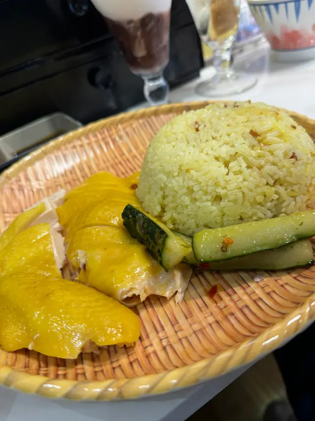 朋友說平日都要早點到,因為都比較多人,我們約7點半到就已經坐滿人,餐廳分隔咗兩邊,我和朋友坐另一個小房間。見到好多人吃海南雞,我們都先點一份$62另一份叫炭燒豬頸肉$62每份set都有跟湯和飲品,而且還可以加$22多一份小食,即係全份一百元都不用。海南雞跟有三個汁,有一個好似甜酸醬我比較喜歡,因為特別開胃撈在飯吃一流。而且雞都大大件把骨都洗得很乾淨,吃下去有雞味又滑口。炭燒豬頸肉真的令我很驚訝,豬頸肉嘅份量十分之多,豬頸肉邊有少少脆口大大片,點上甜酸醬很惹味。我們把兩碟甜酸醬也吃光光了。小食我們揀了爆漿芝士波和粉絲春卷。每個set +$22(1份)一咬落去就已經有芝士流出來暖笠笠而春卷炸得剛好,沒有半點炸燶。再配上飲品,椰汁紅豆冰,清涼爽甜,大量紅豆在杯底。鹹檸檬梳打一啖即時解渴,味道一流。…查看更多