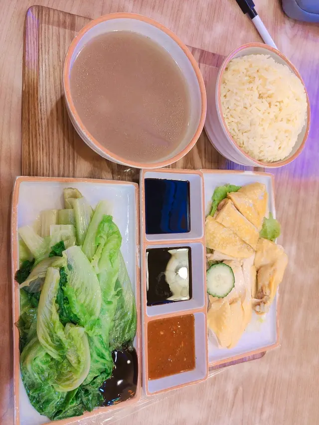 鋪頭裝潢比較簡單,不過食物既質素一定係優先過環境~由於唔太肚餓,所以我同朋友今次只係叫左個一人餐再加一份小食😆先講獨食一人套餐($70)主食有幾款選擇,黎得海南雞專門店,當然要試下佢地既海南雞飯!跟餐仲會有一碗老火湯同埋一碟青菜🥬雖然係一人餐,但雞既份量絕對唔少👍🏻而且雞肉好滑,完全唔會柴😋而海南雞飯既精髓就係三色醬,朋友最鐘意就係黑豉油醬,覺得佢甜甜地唔會過咸用黎點雞仲可以提升雞味。😄而我就鐘意酸辣汁,夠哂開胃,食完一舊接一舊。唯一扣分既油飯比較乾,唔夠油潤😕老火湯係西洋菜豬骨湯,足料之餘冇落味精而且好有屋企既味道😋雖然食果日天氣好熱,但飲到一碗住家老火湯成個人都好舒服😌另外我地都叫左一份小食: 黃金雞卷($35)雞卷即叫即炸,咬落好脆口但雞肉味唔算突出😝呢款小食比較偏向台灣菜,出面好少會食到呢種雞卷。因為我屋企會成日整呢款台式雞卷,所以對我黎講唔算太突出。總括黎講,我地兩個人叫左一個一人餐加一款小食都食到好飽。埋單$105,like佢地ig仲會有九折,$100蚊唔洗就可以兩個人都食飽真係幾抵食🤩…查看更多