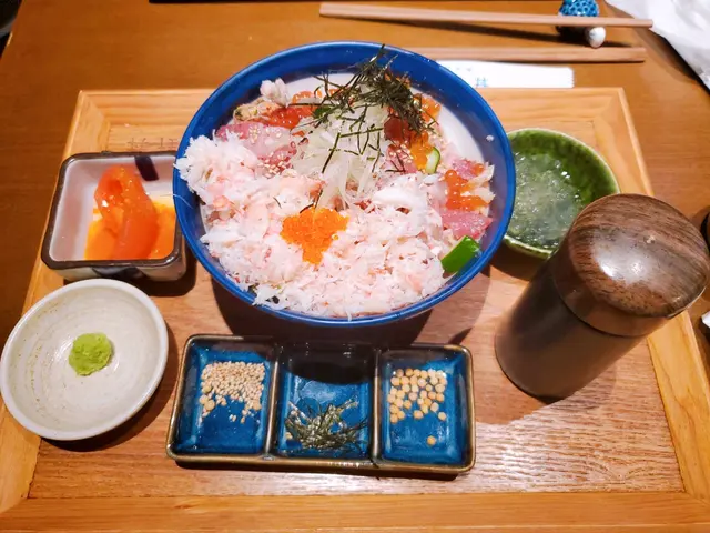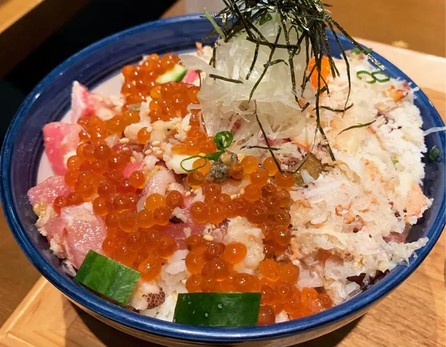 朋友介紹話book mark左好耐一直冇機會試,今日同佢專程黎食佢哋出名既丼飯,順便去附近行下。佢話呢間係香港第1間分店,之後開多左幾間,見佢越做越好不妨一試啊🤔呢度主要食海鮮丼為主,我緊係同朋友揀招牌野啦!最後2個都一致揀左望落最抵既丼,就係海寶丼(上) $160@1,佢係可以2食既,一係正常食法加豉油落飯,二係差唔多最後加湯做茶漬飯。我就一向怕冇味唔太食白飯既,所以中意撈住黎食同有啲汁咁,最初我都正常食法加豉油+washabi,發現唔撈勻會有啲咸有啲又淡咁,所以食食下我就加啲鏗魚湯,佢鏗魚湯係用保溫瓶裝住既,湯味帶有少少柚子味,完全唔會咸,加入去丼飯入面就岩岩好更加提高成碗既鮮味,我自己覺得中和左落完豉油令部分飯偏咸既情況,成個飯啲海鮮有蟹肉,小柱,吞拿魚,鰻魚,章魚,蛤蜊,蟹子,三文魚子,全部味道都幾鮮甜,幾抵食