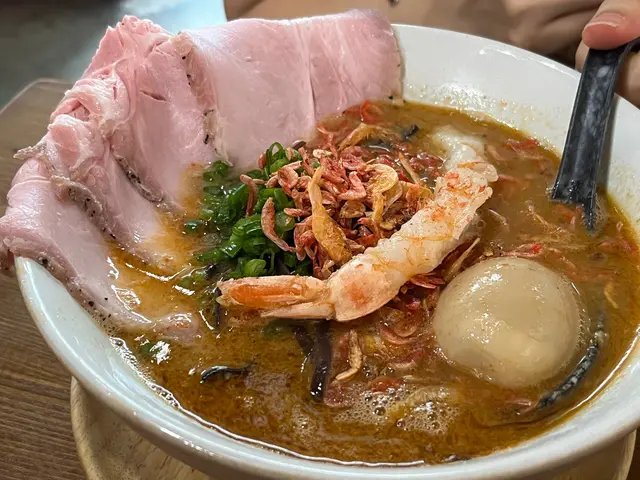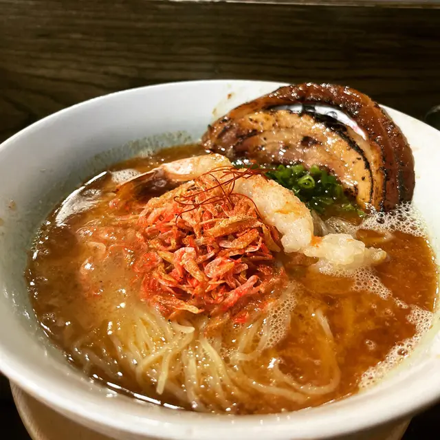 而我就揀咗要硬嘅麵質,✨重點梗係要濃嘅湯底啦!及上面多好多櫻花蝦!仲配多隻成隻蝦比你,而湯底就濃厚蝦香好飲🦐叉燒少肥,但肥厚肉淋,先到大廚先浸叉燒,再用火槍燒兩面,炙得香氣中足,好味😋😋不過美中不既係麵,面無乜特別,尤其面質唔夠彈力,幼面基本上㨂左硬都會係淋左,或者可能有粗拉面會好啲,另外就係你嗰條原隻蝦就麻麻😅(或者當佢係配角就無乜所謂)。$90蝦一碗面嚟講就算係唔錯,回食指數都好高今次有成:80分…查看更多
