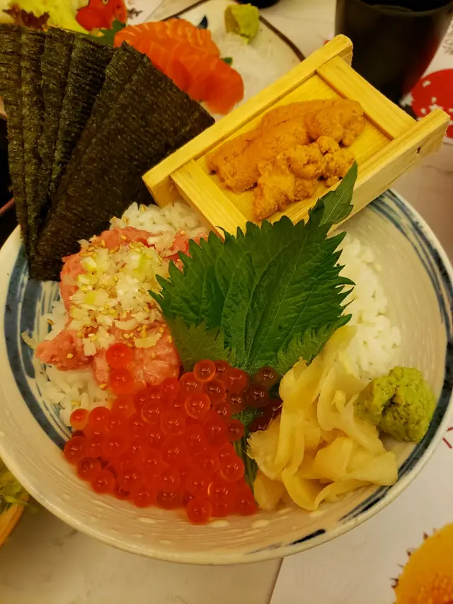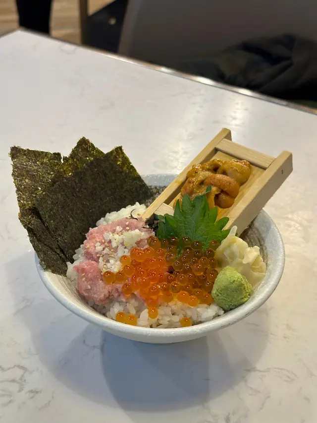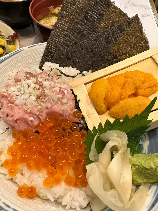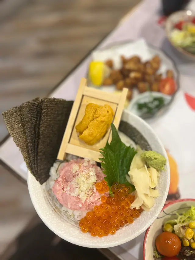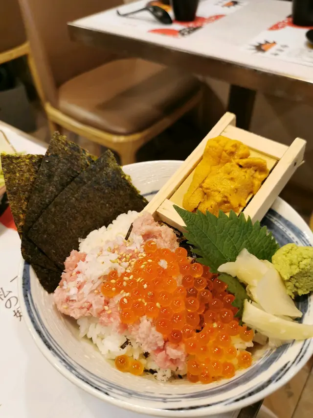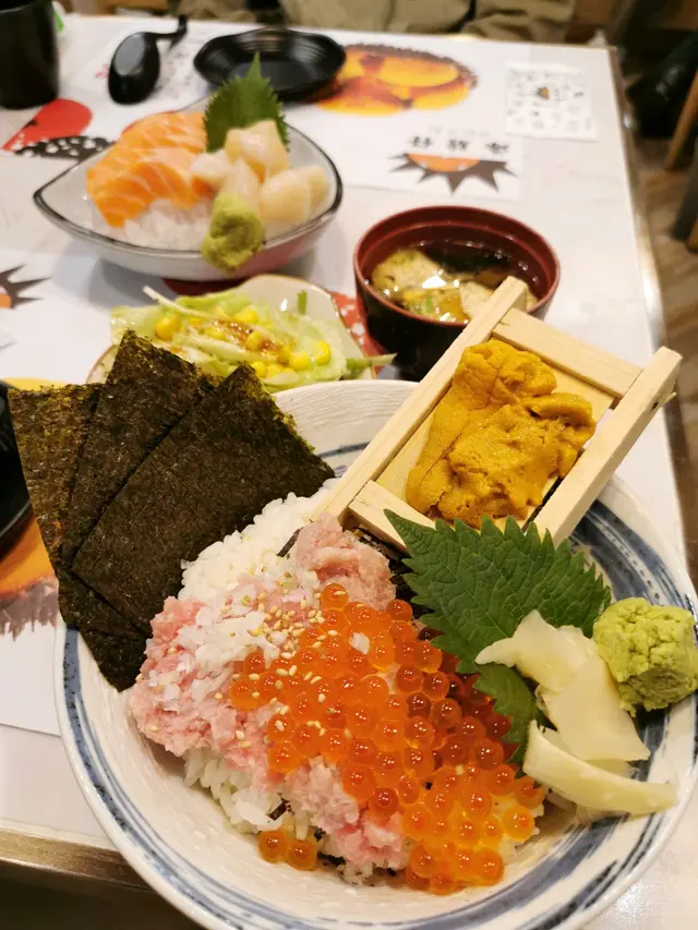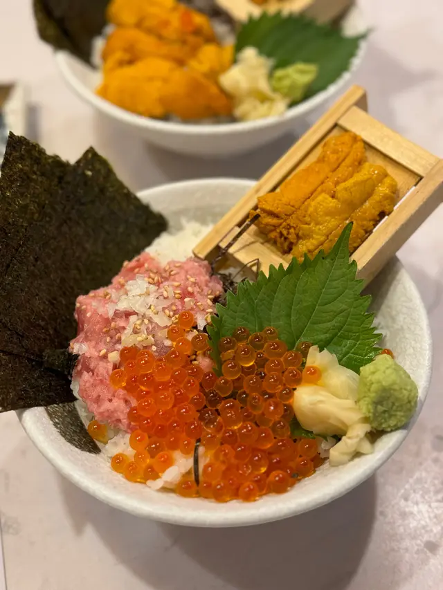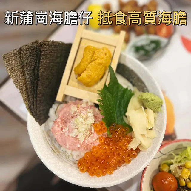 #MC帶你去新蒲崗海膽係一直深受香港人喜愛嘅高級食材,其中原板海膽更受歡迎。不過新鮮海膽來貨都唔平,但今次就搵到間平民價錢都食到海膽嘅餐廳啦😜。🥢 海膽三色丼 $148有齊一板海膽、吞拿魚蓉、三文魚籽同紫菜🥰依個價錢嚟講,十分足料‼️海膽順滑鮮甜,入口都幾順滑Creamy🤤吞拿魚蓉好Creamy,口感非常綿滑加埋少少wasabi同豉油,撈飯食,一流👍🏻三文魚籽大大粒,魚油香味濃厚口感豐富又鮮味,大滿足🤤🥢 活赤貝 $45呈橙紅色嘅原隻新鮮赤貝刺身食落肉質爽厚,鮮味十足☺️另外餐廳好貼心仲有紫菜卷住赤貝群邊同青瓜🥒就算係群邊位都花心機比埋食客💯🥢 甲羅燒配法包(2件) $78抵食之選‼️性價比高‼️蟹蓋裡有滿滿嘅蟹膏🦀仲有細細個嘅鵪鶉蛋🍳食落蟹味香濃,鹹中帶鮮🤤搽完兩塊法包都仲有剩🥖味道濃郁,非常滋味😋🥢 海膽燒帆立貝 $98外層微微灸燒,充滿焦香😍帆立貝鮮甜美味海膽融和一體初嘗試食海膽嘅,不妨一試😉🥢 燒物/串燒串燒燒物嘅款式多達32款,比得上居酒屋‼️試咗三款大路熱門嘅串燒🍢,調味溫和唔會太多調味粉,食得到本身食材嘅鮮味👍🏻。.✅ 雞腎︰口感唔錯,爽口唔韌✅ 牛舌︰厚切牛舌,口感彈牙✅ 翠肉瓜︰爽口多汁,軟嫩清甜.…查看更多
