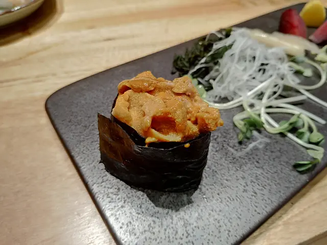 朋友周圍食Omakase,今日帶我來位於尖沙咀平時不怎麼會經過的亞士厘道樓上的”鮨真”,店內的日式裝潢像已置身日本。今日坐在吧枱,能看著師傅對每一樣食材的處理,真是享受。季節推介 (菊) $1280一位前菜: 北海道生粟米爽口鮮甜好好食,蕃茄蘸鹽吃,別有一番風味。漬物 - 酸蕎頭 酸薑 秋葵 蘿蔔。刺身:1.平目 - 師傅介紹食法刺身卷上蔥,再在鹽板上轉2-3圈,鹽板上有柚子皮,肉質鮮嫩有口感,味道帶少咸和柚子香,可提鮮。2.新鮮銀雪魚很少吃到的新鮮銀雪魚刺身,吃過後真的不想吃冰鮮的了,肉質嫩滑,魚皮爽韌,魚油脂香豐富,特別有驚喜。3.沙錐魚沙錐魚也比較少食到,配薑豉油食,不錯。4.金目鯛用火槍輕燒過,皮很香帶點脆,口感軟滑。5.北寄貝口感爽嫩,新鮮清甜。6.鯖魚肉質好腍嫩滑,中間夾著紫蘇葉和薑,味道豐富多樣。7.拖羅厚切嘅拖羅油脂更豐富,口腔怖滿拖羅油,軟棉棉口感真是一流,超嫩滑溜,魚味香濃。8.燒帶子好大粒好厚身,紫菜好新鮮極脆,師傅要我們馬上食,燒的火喉剛好,不失鮮味,配在一起有外脆內軟的口感。壽司:1.章紅魚壽司 - 鮮甜味美。2.赤貝壽司 - 好大好厚一片,口感爽、夠鮮味。3.沙甸魚壽司 - 梅加紫蘇葉的配搭,令味道更突出。4.三文魚子壽司 - 粒粒晶瑩剔透,入口爆出鮮味。5.海膽壽司味道不算太濃,鮮甜無澀味,味道剛剛好。6.火炙左口魚魚邊壽司入口即溶,魚脂充分溶化在飯團上溶為一體,最愛的一款。大蜆麵豉湯 - 蜆好大隻剛好放滿整個碗,蜆肉好大粒,味道新甜腍軟,麵豉湯味道香濃。水果日本哈蜜瓜 - 極汁潤,鮮甜,非常滿足。師傅細心,對食物一絲不苟,態度用心,服務周到,期待他們有更多精美的作品,一定會再來。…查看更多