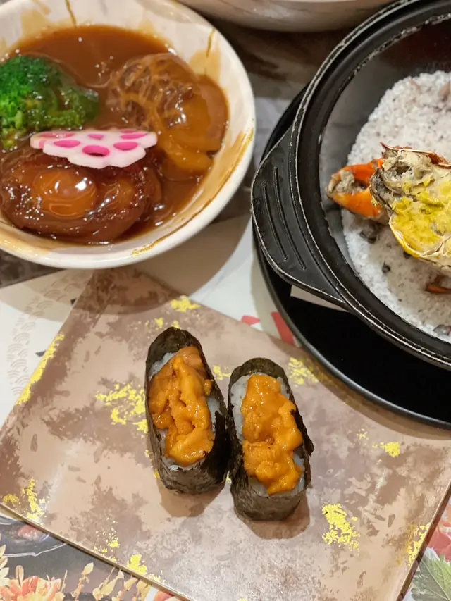 呢間餐廳主打豐富日式放題🇯🇵兩小時任食刺身、卷物、江戶前壽司、炙燒壽司、軍艦、一品料理、串燒、炸物、燒物、麵鍋、蒸焗鐵板料理、天婦羅等超過100款食物,仲有魚子醬、海膽、鮑魚、榴連等高級食材🤩出餐速度快又唔會漏單,真係食到棒住個肚走🫣💗晚市放題($378/ 人)👇🏼以下🔟款係最值得添食:1️⃣刺身:刺身全部都好新鮮,特別推介蜜柑鯛、三文魚、金槍魚腩、北寄貝、北海道鮮帶、赤貝同赤海蝦🐟2️⃣鱘魚子醬:雖然唔係超高級個種,但食起嚟有鹹鮮味,任食嚟講絕對係回本之選🖤3️⃣花雕醉鮑魚:鮑魚彈牙入味,帶陣陣花雕酒香🥃4️⃣泰式虎蝦:生蝦爽口彈牙,蘸上泰式酸辣汁同夾住生蒜片辣椒食,好開胃🦐5️⃣波士頓龍蝦:凍開邊龍蝦大隻厚肉,肉質爽口鮮甜🦞6️⃣殿堂級鐵板鵝肝厚多士:香煎鵝肝厚身肥美,入口充滿油香,配埋香脆嘅香草牛油多士一齊食,簡直係完美🪿7️⃣清酒煮鮮蜆:大大隻沙白飽滿冇沙,用清酒牛酒煮過特別鮮甜🐚8️⃣皇牌燒乳鴿王:燒乳鴿皮脆肉嫩,點埋淮鹽食仲正🦆9️⃣燒牛舌:薄切牛舌燒得焦香,肉質脆嫩彈牙🐮🔟避風塘炒蟹:選用肉量飽滿嘅新鮮蟹,加入大量香脆炸蒜,蔥段同辣椒炒香,夠哂香濃惹味🦀…查看更多