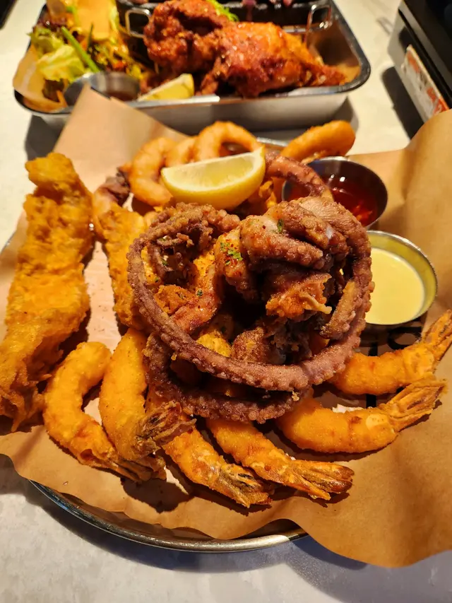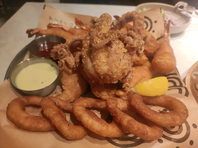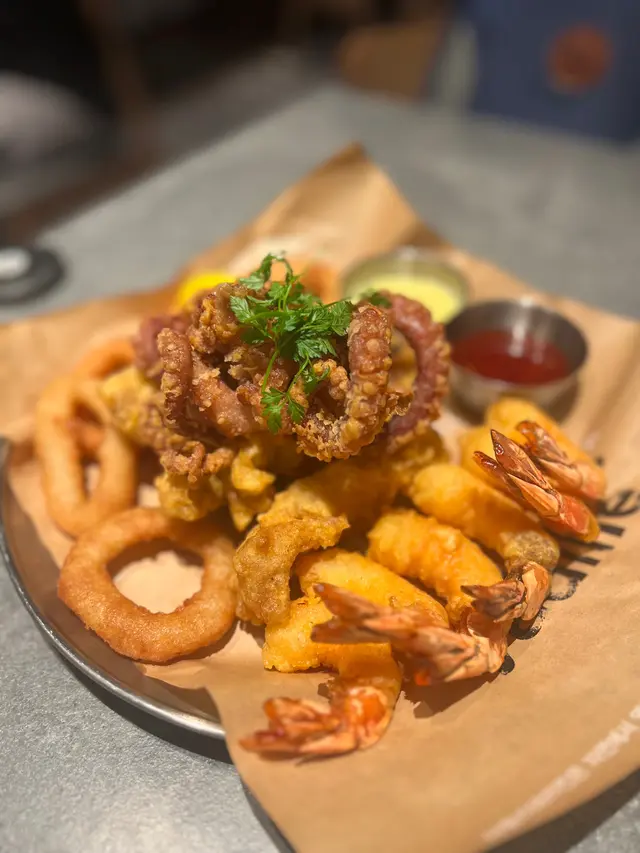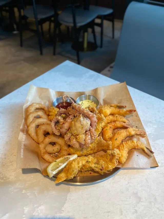 (炸魷魚、炸魚與炸蝦)則是海鮮愛好者至愛,每一口都酥脆可口。而飲品海鹽焦糖沙冰