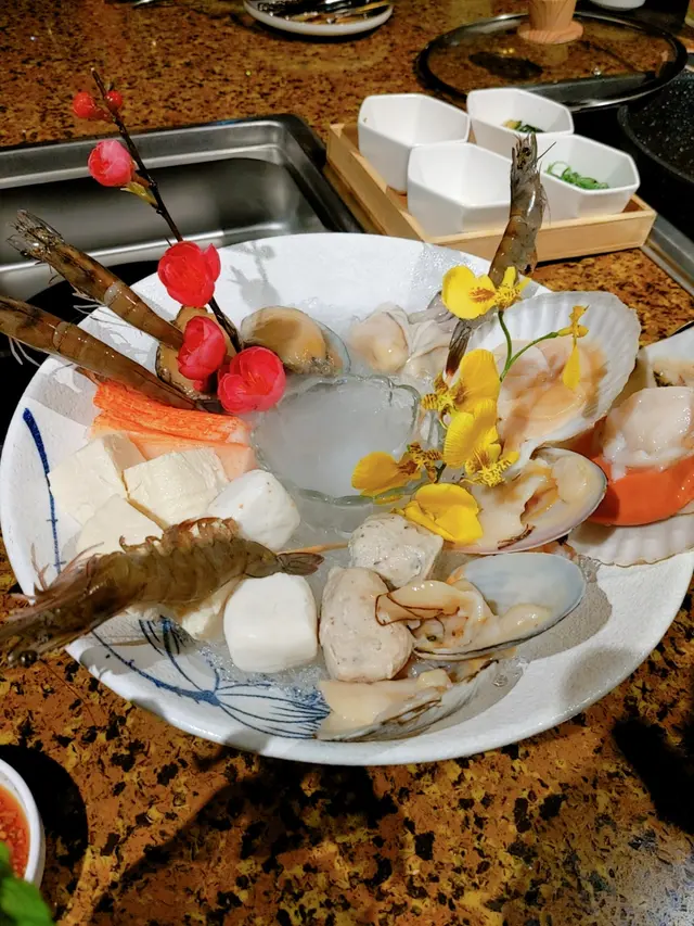 今晚睇完戲同一班 friend 去尖沙咀搵食,朋友介紹味火鍋放題,不限時任食,夜晚10:00先到,一去到全埸爆滿。首先選左酸菜魚+4隻龍蝦做頭盤先,酸菜魚幾麻,酸菜有啲咸,但魚都幾滑,OK啦。半隻波士頓龍蝦麻麻地,味道一般。我地選擇麻辣鴨血及牛肝菌做雙拼湯底,先黎一大盤海鮮拼盤,有蝦,生蠔,扁貝,蟹柳,石斑,蝦丸,墨魚丸,非常豐富。再上牛肉拼盤,牛小排,牛肩胛,封門柳,牛板鍵,份量大約每款每人2塊左右。之後就按個人喜好任選食物,黑毛豬肉都厚身好味,牛唔夠可以再叫肥牛,其他配料正常水啦。最尾來一個 Mövenpick 雪糕作結尾,大滿足。總括係好低食既,依359+1,仲有啤酒任飲,服務都幾好,仲要我地食到差不多1:00, 下次會再黎幫襯👍…查看更多
