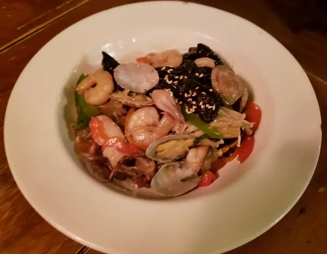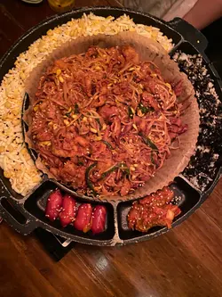 【旺角鬧市數一數二嘅韓式抵食天堂🔥Outdark食評】今日同屋企人去咗旺角呢間位於飛達商業中心二樓嘅Outdark韓國餐廳,真係要大力推介吓!聽講餐廳由韓國人主理,連食材都係由韓國直送,難怪味道咁正宗啦~🌟雙拼炸雞(Honey Garlic + Sweet and Spicy)必嗌!兩款味都勁正🍗蜂蜜蒜香超惹味,甜而不膩;酸辣味醒神開胃,咬落去雞肉嫩滑到爆,外皮炸得酥脆唔油膩!配埋波浪薯角、番薯條,邪惡到停唔到口~🧀辣炒雞肉鐵板上枱時滋滋聲超治癒!辣雞肉醃得入味,旁邊圍住溶緊嘅芝士、粟米、紫菜飯、腸仔同泡菜,一拉絲就忍唔住瘋狂撈飯!份量夠3-4人食,大滿足!🍜炸醬麵真心係我喺香港食過最有驚喜嘅!醬汁濃郁得嚟唔會死鹹,麵條彈牙掛汁,仲有啖啖肉碎同青瓜絲平衡膩感,熱辣辣咁食真係無得頂!特別要讚佢哋嘅Menu係自製設計,連炸醬都係自家調配,唔係用現成貨!🦑海鮮炒粉絲粉絲炒得乾身夠鑊氣,海鮮料落得足,辣度頗勁🌶️建議同朋友share先搞得掂~🍙烤牛肉紫菜包飯牛肉香濃唔韌,米飯捏得實淨,做主食或者打包返屋企都得!總結:人均$250左右,性價比超高!由韓國人主理保證正宗,Menu全部自製設計有心思,服務態度友善,環境舒服,地點就腳(旺角站行幾分鐘就到)。想同朋友盡興食餐好嘅,呢間絕對可以encore☺️#Outdark #旺角韓餐 #炸雞鐵板必點 #韓國人主理 #自製Menu #抵食大份 #香港美食 #香港必食…查看更多