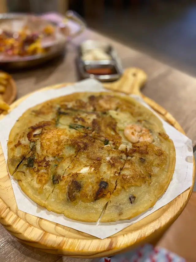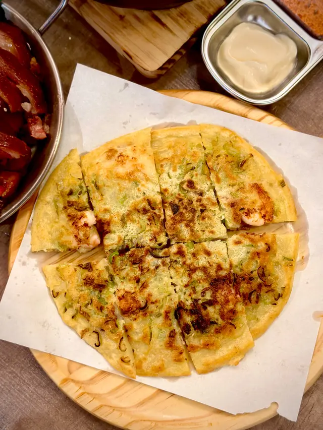 這次我們再次來到餐廳,利用即將到期的coupon💵,品嚐其他菜餚。因為大家並不太肚餓,所以只點了兩道菜和一個甜品。秘製大蝦水梨辣冷麵配泡菜🍜🦐大蝦🦐鮮嫩可口,冷麵🍜使用了韓國蕎麥麵,與日本蕎麥麵不同,韓國蕎麥麵更細緻,口感煙韌。冷麵搭配冰凍的清湯,帶來清爽的口感。加上辣泡菜🥬、甘甜的水梨🍐、青瓜絲🥒和雞蛋🥚,這道菜讓人食欲大開。店員還貼心地提供剪刀✂️,方便客人剪開冷麵享用。海鮮煎餅🦑🦐🍕這道煎餅的餡料包括蔥🌱、洋蔥🧅、魷魚🦑和蝦🦐。然而,煎餅的口感並不夠酥脆,有些軟綿,味道一般。冰火鐵板雪糕布朗尼(配粉紅岩鹽芝士奶蓋)🍦🍰店員在上菜時會在鐵板上點燃火🔥,鐵板上放有布朗尼和棉花糖,布朗尼上再放上雲尼拿雪糕🍦。店員會建議我們將士多啤梨味🍓的岩鹽芝士奶蓋倒在布朗尼和雪糕🍦上,待兩分鐘後熄火。需要注意的是,不能等得太久,否則會燒焦。這道甜品帶來了冰冷和熱情的交錯感覺,非常愉悅,很快就被我們吃光了😋。…查看更多