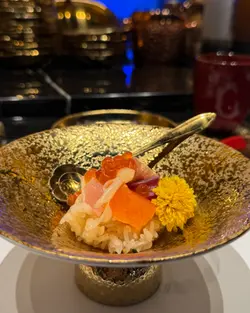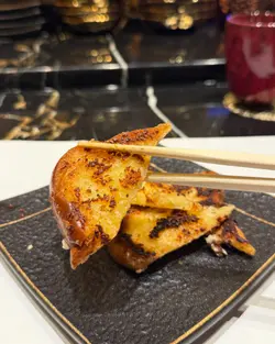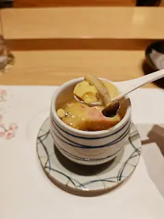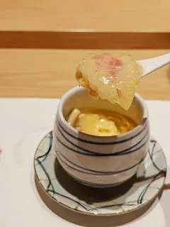 放工約左朋友去試瀧宴鐵板燒😆,係北京道1號8樓,平時應該會睇到煙花🎆我哋揀左瀧宴宫崎和牛龍蝦套餐(HK$980),有牛有海鮮,一次過滿足晒兩個願望😚❣️👉🏻前菜🥗前菜有三款,味道清甜~👉🏻季節刺身🐠店員上菜時有提醒刺身進食的次序,由赤蝦、油甘魚,再到吞拿魚,十分細心,刺身也十分新鮮。👉🏻蓋物🍣角切迷你丼飯,刺身口感豐富,配上壽司飯及加了芝麻點綴,味道更有層次。👉🏻海鮮茶碗蒸茶碗蒸加了🦀蟹肉芡汁烹調,鮮甜有蟹味,燉蛋滑溜,吃完刺身壽司可以暖暖胃❣️。👉🏻大蜆清湯🦪蜆湯簡單清甜,蜆肉沒有沙👍🏻。👉🏻汁煮愛媛縣鰤魚鮫🐟鰤魚鮫煮得入味,醬汁味道適中,不會蓋過食材的味道。👉🏻南非鮑魚師傅刀功精細,把鮑魚切成薄片,鮑魚邊口感偏軟,中間部位較有質感,每一片也沾滿了醬汁🥰。👉🏻野生生猛龍蝦龍蝦爽口鮮甜,配上用了龍蝦膏及牛油特製的醬汁🧈,香口惹味🤤。👉🏻日本宮崎和牛🐮和牛選了3成熟,雖然份量只有三件,不過咬下肉質十分嫩滑😳,油脂感很強,只有三件也很滿足呢🥩。個人比較喜歡配海鹽,簡單調出和牛的香味,配蒜片味道會較濃烈。👉🏻煙肉香蒜炒飯 & 炒什菜炒飯很有火侯,軟硬適中,加入了煙肉及香蒜,配上燶邊蛋,整個套餐份量很足夠🍚!最後吃炒菜,感覺濕潤及中和鐵板燒的油膩感。亦可以配上餐廳的特製醬料。👉🏻抹茶紅豆布甸吃甜品時,師傅還請了我們吃蒜蓉多士,多士煎得超級香脆,陣陣蒜香味十分濃烈,好邪惡啊😈😈多謝師傅!當晚鐵板燒師傅十分親切👨🏻🍳,不時也會問我們菜式是否啱口味。而且他們和客人打成一片,談天說地,看起來大家也很享受當晚的氛圍。小編覺得吃鐵板燒,除左係欣賞食物的味道,整個體驗也很重要,覺得瀧宴依方面做得好好👍🏻。餐廳對着維港,如果煙花匯演嘅時候嚟真係幾正🎇!不過唔知會唔會加價呢~…查看更多