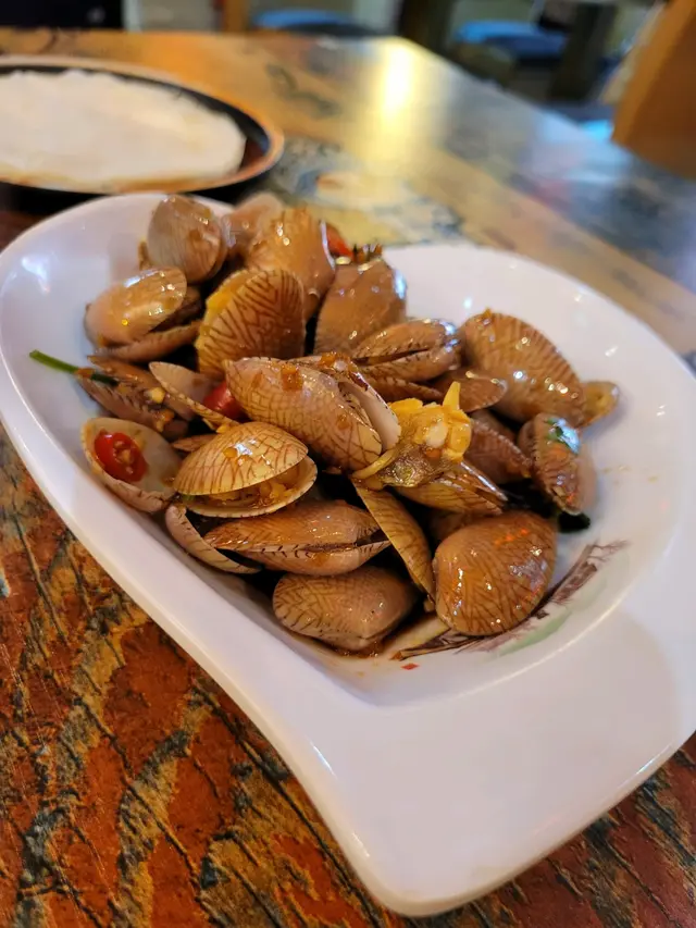 在銅鑼灣的血拼前的川菜午餐,來到川滿居。店子開業經年,古早味的裝飾散發出經典川菜餐廳的風格。出來的是餐廳自己煲的酸梅湯,酸梅的味道很濃,能中和濃味川菜的膩滯感,還要是自家製用不同的玻璃杯上,好可愛。半份片皮鴨秒速登場,是第一下即時觸動味蕾!鴨皮竟然似薯片般脆,香口度登頂!鴨肉厚而鬆化,用麽麽皮包著青瓜及京蔥,加入鴨醬,好食到無與倫比!細的金湯酸菜魚都好大盤!金湯的酸辣度剛剛好,帶強烈的花椒香!魚片細滑柔嫩,配合荀片、白蘿蔔片、菇菌,與底下滑滑的薯粉,滋味爆燈!乾煸四季豆是食得出的鑊氣,煸得香而不油,小人當場食了三分之二!相反孜然羊肉沒多少孜然味;而最後才上的涼拌花甲不夠酒香,而且勁多粒都沒有開口。上菜快、價錢抵,除了羊肉和花甲之外都相當滿意。…查看更多