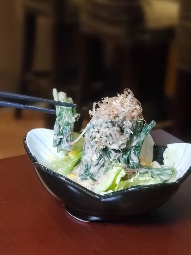 可以唔洗大富大貴,但間中食下好野,對自己好d,都應該呀?我對魚生呢味野,或多或少都有d要求,脂肪多d既,肉要厚d,油香就緊咖啦,最好要埋腩位,我怕食到d筋,性格開朗D呀,唔係條魚,係個師傅,咁先岩mood呀麻。👇🏻📌前 菜 -▪️ 混 醬 菠 菜 沙 律 - $42 ▫️ 先黎個前菜「混醬菠菜沙律」,菠菜相當新鮮爽口,配搭混醬入口濃香惹味,砌到個塔咁,賣相吸引。📌壽 司 盛 合 -▪️ 鮪 壽 司 盛 12 款 - $168▫️ 跟住再黎人氣招牌「鮪壽司盛12款」,一次過試勻「三文魚醬油漬」、「三文魚腩」、「油甘魚」、「海螺片」、「帆立貝」、「甜蝦」、「火炙左口魚邊」、「海膽軍艦」、「三文魚子軍艦」、「蔥吞拿魚腩軍艦」、「加州卷」、「自家製玉子」,佢地刺身非常新鮮,尤其是甜蝦,口感爽彈,左口魚邊經火炙過,入口油香豐腴,海膽鮮味十足,玉子幾乎入口即化,蛋香十足,呢個價錢真係性價比首選!📌串 燒 - ▪️ 安 格 斯 牛 肋 串 - $52▫️ 熱食方面嗌左個「安格斯牛肋串」,外層燒得微微焦香,食落肉質軟腍彈滑,牛味係相當突出,值得推介。📌時 令 季 節 -▪️ 日 本 螢 光 魷 魚 - $40▫️ 呢個由老闆推介「日本螢光魷魚」食到微微酸甜,入口帶點黏性,煙煙韌韌幾有咬口,正。📌鍋 物 -▪️ 清 酒 煮 蜆 - $68▫️ 另一款值得一試就係「清酒煮蜆」,蜆肉洗得非常乾淨,完全食唔到有沙,配上清酒底,蜆肉鮮甜得黎帶點酒香,好食。📌主 食 - ▪️ 蟹 籽 三 文 魚 炒 飯 - $88▫️ 最後試埋個「蟹籽三文魚炒飯」,師傅將蟹籽、栗米、蛋、洋蔥、三文魚一次過炒,再經醬油調味,一上枱香到不得了,而且份量絕對係夠兩三個人share,超級抵食,難怪個個都會嗌! …查看更多