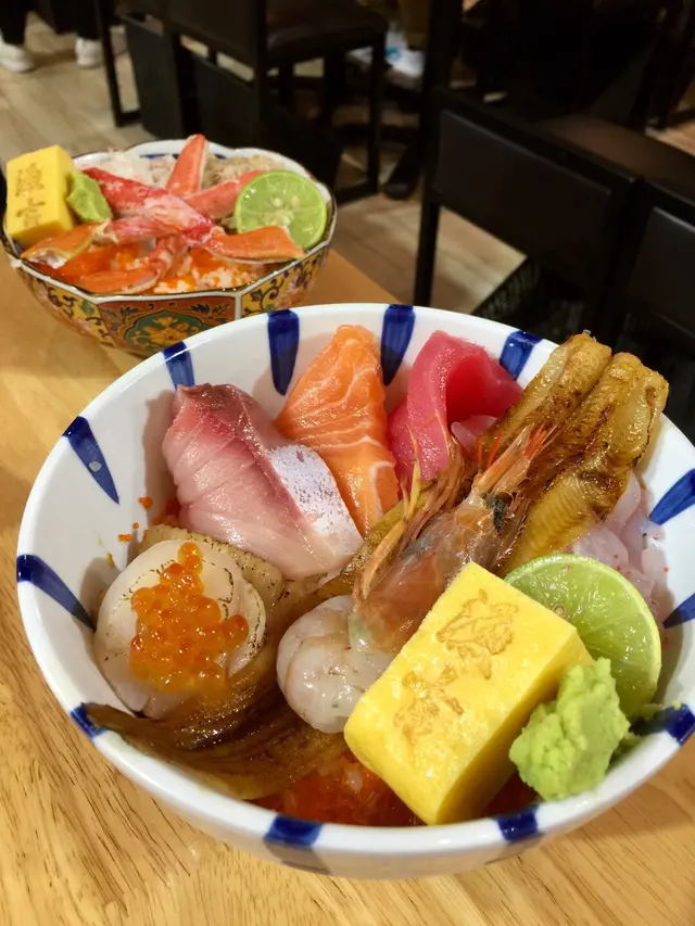 三文魚子拌飯,魚油爆出,極為滋味!三文魚子的鹹度夠,完全不用加醬油~~青檸汁可中和海膽及三文魚子帶來的膩!豪快海鮮丼,刺身種類比漁吉特選丼少一半但每款刺身就有兩件,蝦就用上甜蝦,但也不會太幼細,size都算ok!大家對於今頓晚飯都覺得滿足,只是可惜今次未能試小食啊!幸有免費任飲的鮮味味增湯補數!雖然座位不算好寬敞,但每張座椅下放有置物籃,所以也不會好擠迫啊!整體的用餐體驗不錯,會再光顧的~~~…查看更多
