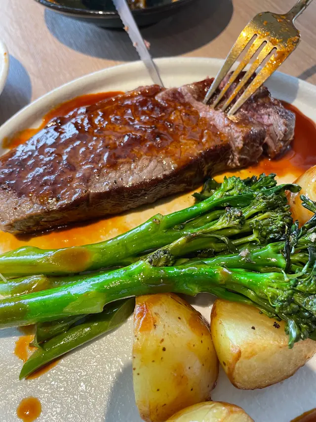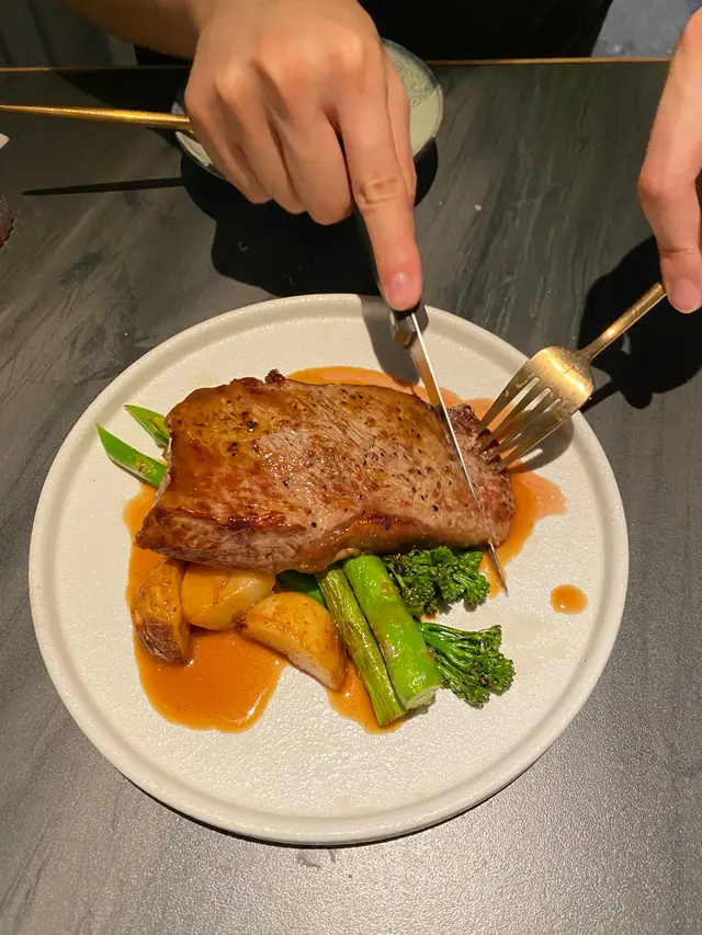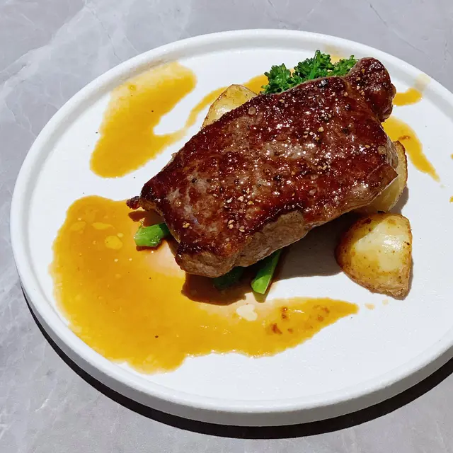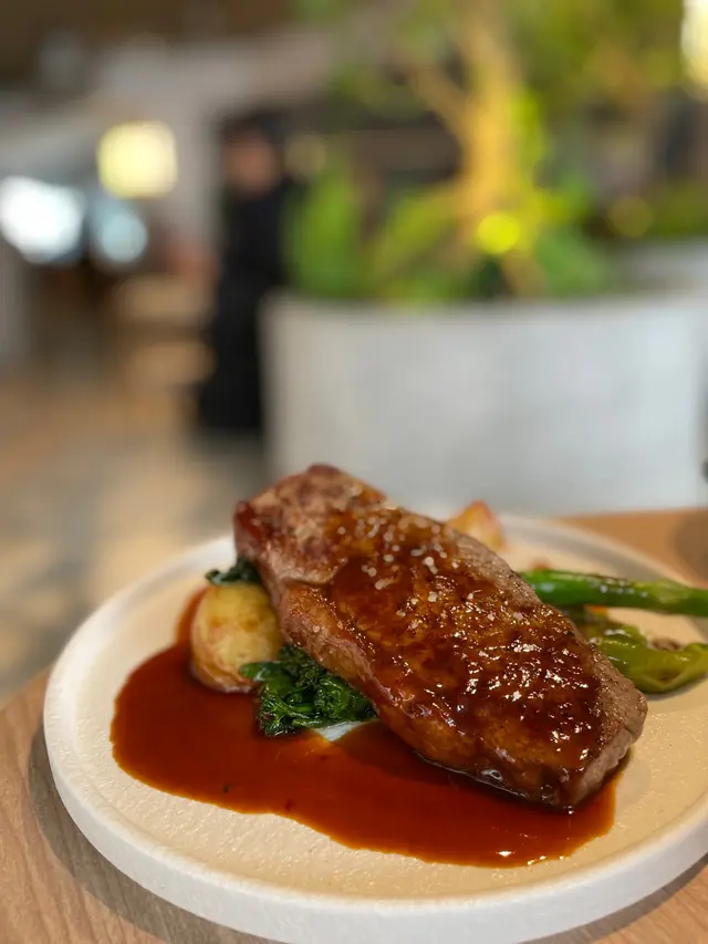 牧羊少年咖啡館大約有10間8間,唯獨位於文化中心的這家是屬於牧羊少年的浮萍。餐廳裝潢充滿格調,偌大的店舖,座位不會擺放得太過擠擁,而是寬敞舒適。朋友大約提前一個月左右訂位,只有6:30pm及8:30pm兩個時段可選。當晚致電詢問能否提早前往,獲回覆指有客人已結帳離座,才可提前至8pm入座。紅菜頭辣根漬三文魚流心布袋芝士配小蕃茄及青提沙律,三文魚以紅菜頭醃漬,魚肉呈紅色,並沒有紅菜頭那陣青味。三文魚肉大片厚身又柔軟。布袋芝士即burrata cheese,因形狀胖乎乎的像一個漲鼓鼓的小布袋而得名。一切開那布袋,香滑流心的芝士溢出,與紅菜頭三文魚的味道相配,加上horseradish cream就更為滋味!酥脆魷魚圈配辣根時蘿蛋黃醬,魷魚圈的份量很少,炸粉稍厚,又炸得焦了一點,調味不夠惹味。澳洲M4安格斯西冷及香烤蔬菜佐牛燒汁,5成熟的西冷扒外層燒得焦香,內裡肉質粉嫩軟稔,肉汁豐沛,簡簡單單配上牛燒汁已很好吃😋椰奶骯髒咖啡,咖啡帶淡淡椰子香🥥之餘又不會蓋過咖啡香,幾好飲~~~整體用餐體驗舒適,使人能在浮萍上與牧羊少年一起享受一個寫意的晚上。…查看更多