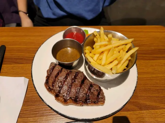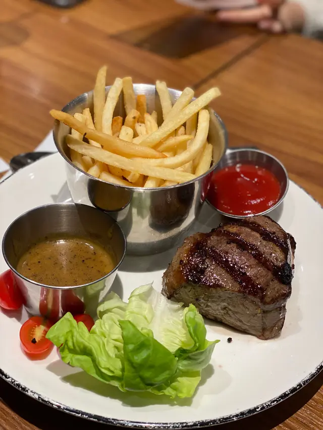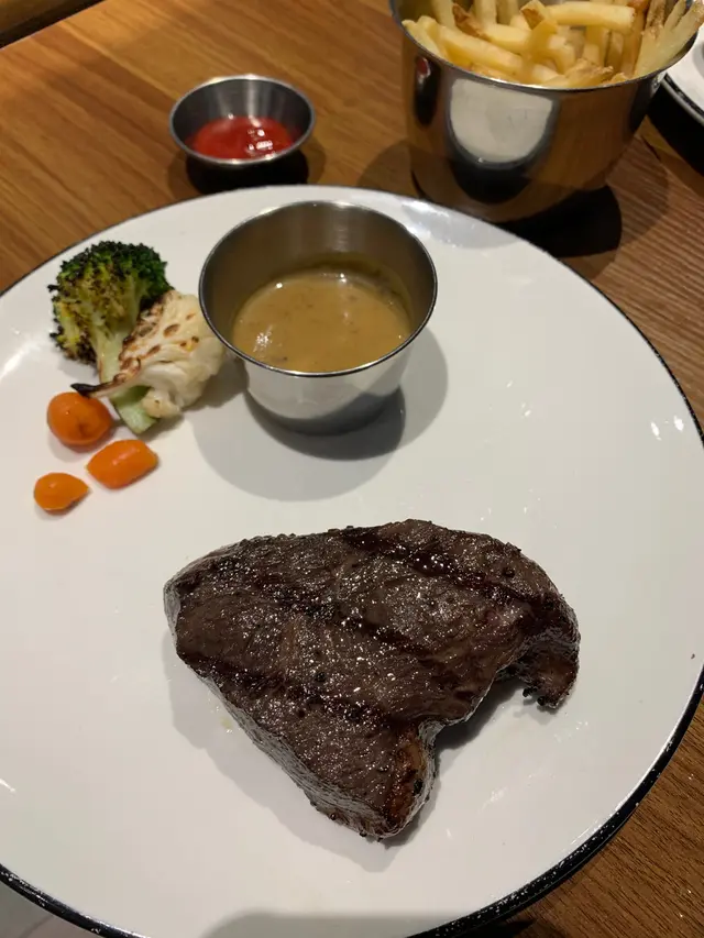 近年有很多小店進駐深水埗,當中也有不少餐廳,那天經過門口感覺不錯就想試試。他們的款式不算很多,而且我也不餓,就叫了兩個牛扒餐。第一個是黑牛安格斯肋眼扒,第二個是澳洲M7和牛里脊,雖然他們說是200g,個感覺還是有點小的,還好薯條和汽水都是90分鐘任食的,不然我應該還會餓。我們都點了三成,非常粉紅,雖然有點小,但肉味很濃,而且都非常冧身,而M7相比下口感再冧一點,但肉味比肋眼淡一點點,整體上牛肉是可以的。但我對於旁邊的蔬菜感覺有點無奈,也太少啦吧? 而且那隻碟很大,感覺就小上加小。…查看更多