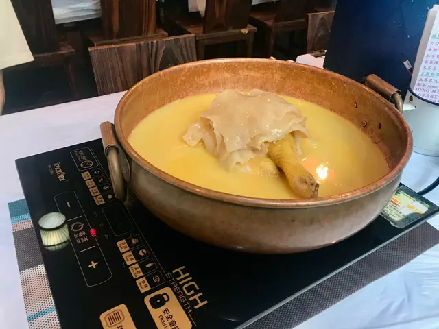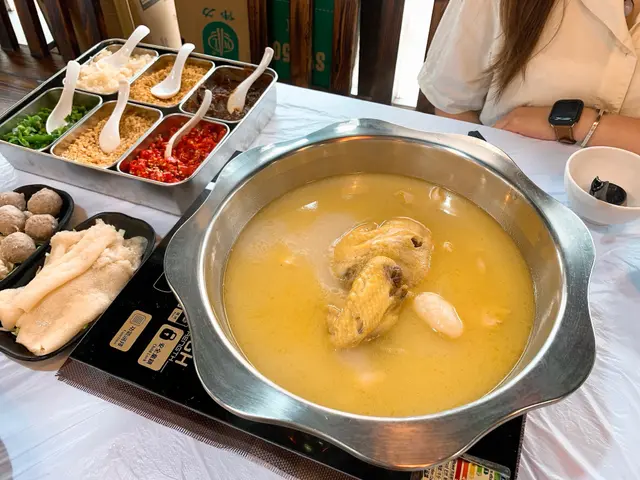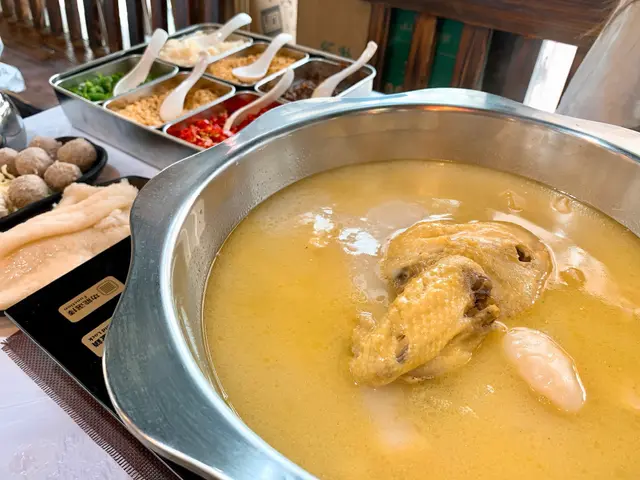 呢間餐廳以竹簾同紅木餐桌營造中式小店感覺,更首創花膠雞鍋打邊爐👍🏼 全店均採用高品質食材,每括每日新鮮游水海鮮、大埔振興出產嘅丸類同本地新鮮或進口嘅肉類蔬菜🥙💗濃厚原隻雞煲花膠湯($308/ 半隻)花膠雞湯濃稠金黃,湯內有半隻雞同多片花膠,夠哂真材實料,先飲一碗熱湯,味道濃郁鮮味🍲花膠都算大塊,口感爽滑充滿骨膠原,雞肉亦非常嫩滑🐔💗南非鮑魚仔($176/ 2隻)南非鮑魚肉厚彈牙,鮮味十足🐚💗日本A5黑毛和牛($338)A5黑毛和牛帶漂亮嘅油脂紋理,肉質細嫩,肉味同油脂香都有🐂💗手工魚皮餃($45)魚皮餃皮薄餡滿,口感Q韌彈牙🥟💗爽脆牛黃喉($65)牛黃喉口感爽脆帶有嚼勁🐮💗黑松露鮮肉雲吞($60)雲吞皮薄餡靚,包住滿滿黑松露鮮肉餡,一咬落去黑松露香味係口中爆發🖤💗鮮味炸魚皮($45)炸魚皮脆卜卜,越食越上癮🐟💗唐生菜($43)唐生菜新鮮翠綠,食落非常脆嫩🥬…查看更多