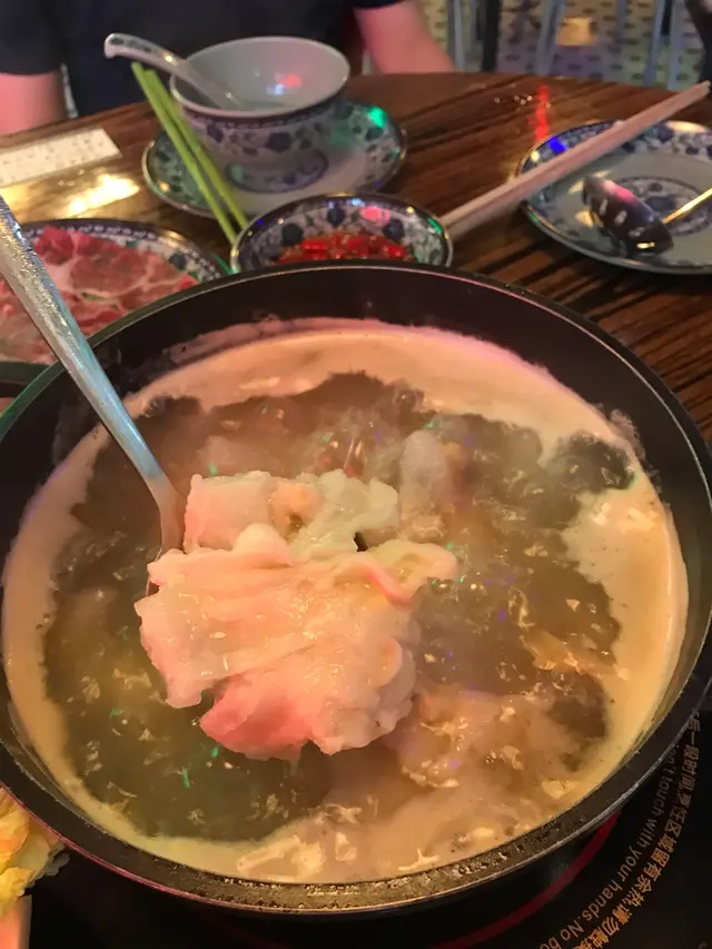 望見呢個天才與白痴既霓虹燈, 大家都知我今晚約左一堆白痂一齊同我呢位天才一齊烚下烚下, 哈哈哈坐底無耐, 餐廳職員已經招呼周到, 服務態度超好, 一坐底即刻有兩款街頭小食可以頂住肚先, 分別係炸魚蛋同炸燒賣, 食完唔夠喉仲可以再ENCORE 添, 火鍋醬料都有6款可以任你揀, 生蒜 炸蒜 蔥 辣椒絲 花生醬我既滋補養顏花膠雞湯終於黎啦, 真係好建議大家飲返碗頭啖湯先好打邊爐, 咁就可以飲到真正既原汁原味, 唔會俾火鍋食材既味道蓋過左你地睇下塊花膠係幾咁肥美同厚身最後我決定將D雞同花膠放落隻碗度, 咁我就開始可以打邊爐啦, 其實雞同花膠既分量非常多, 真係好足料, 難怪D湯會咁甜我最揀左最豪華既套餐, 星期一至四仲有85折,$279一位,咁就可以品嚐到安格斯牛小排, 特選牛頸脊, 穀飼牛板腱, 美國肥牛, 呢個價錢可以任食高級牛肉, 真係物超所值仲有以下既火鍋配料任君選擇添最後仲有呢樽烈火菜脯, 果然無改錯名, 辣到噴火餐廳仲會無限供應俾大家刺激大家既味蕾, 我最後決定帶埋佢返屋企添火鍋過後, 我仲叫左個冰冰黎降一降火添, 透心涼~…查看更多